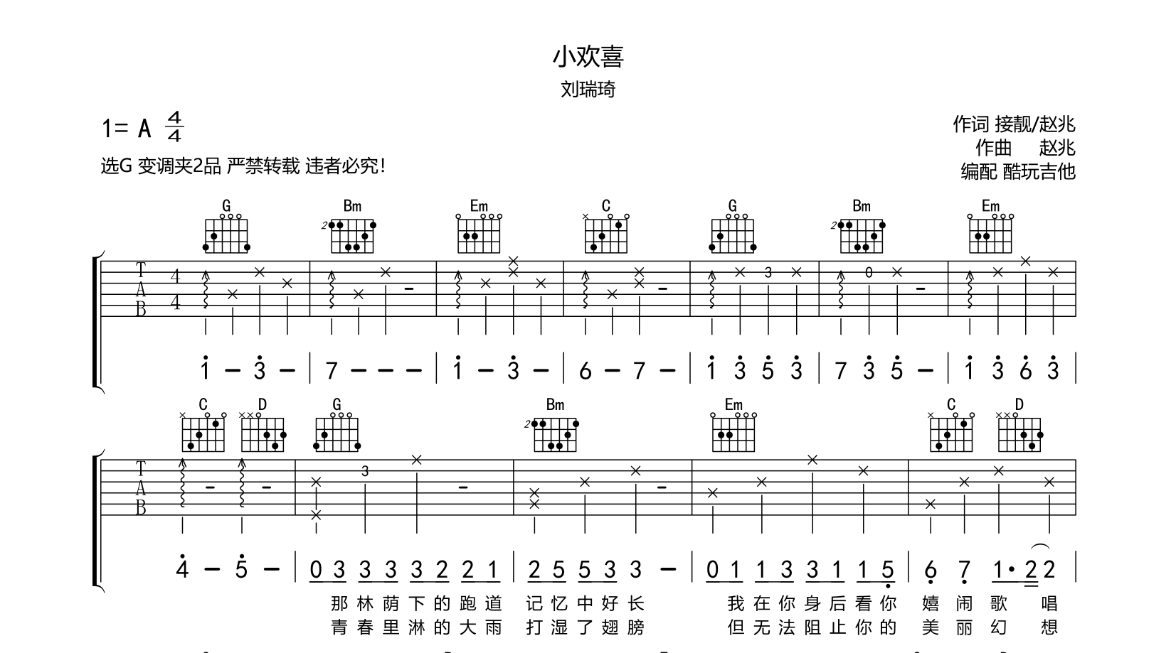 吉他小欢喜 吉他谱 刘瑞琦