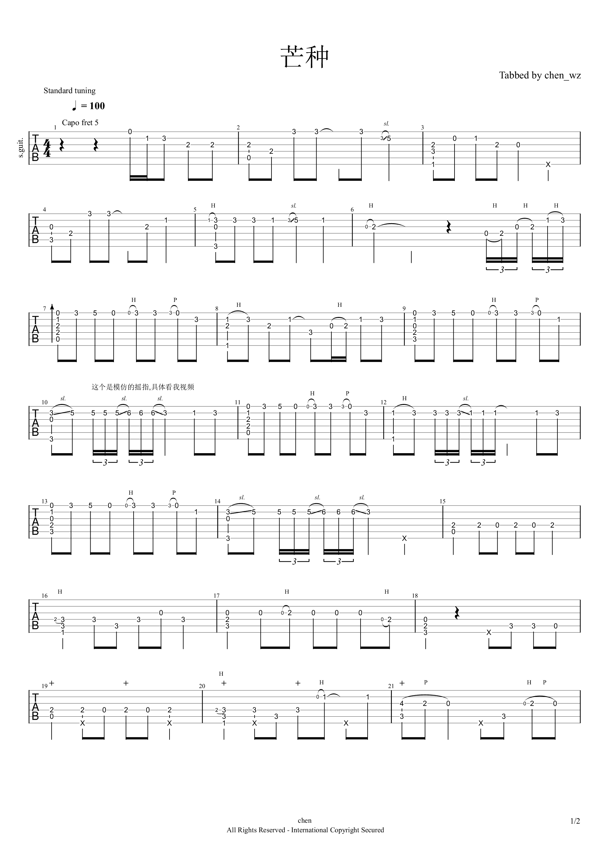 两个版本请注意曲谱诠释1弦不夹...