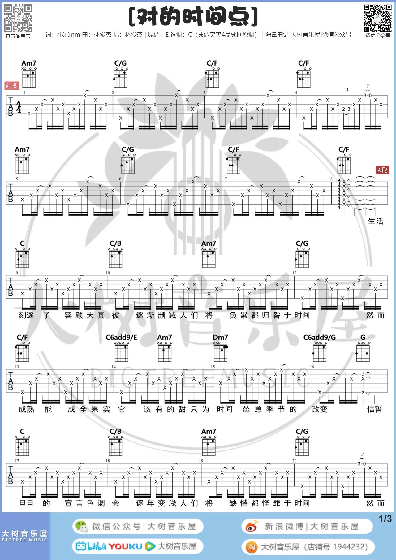 吉他对的时间点 吉他谱 林俊杰