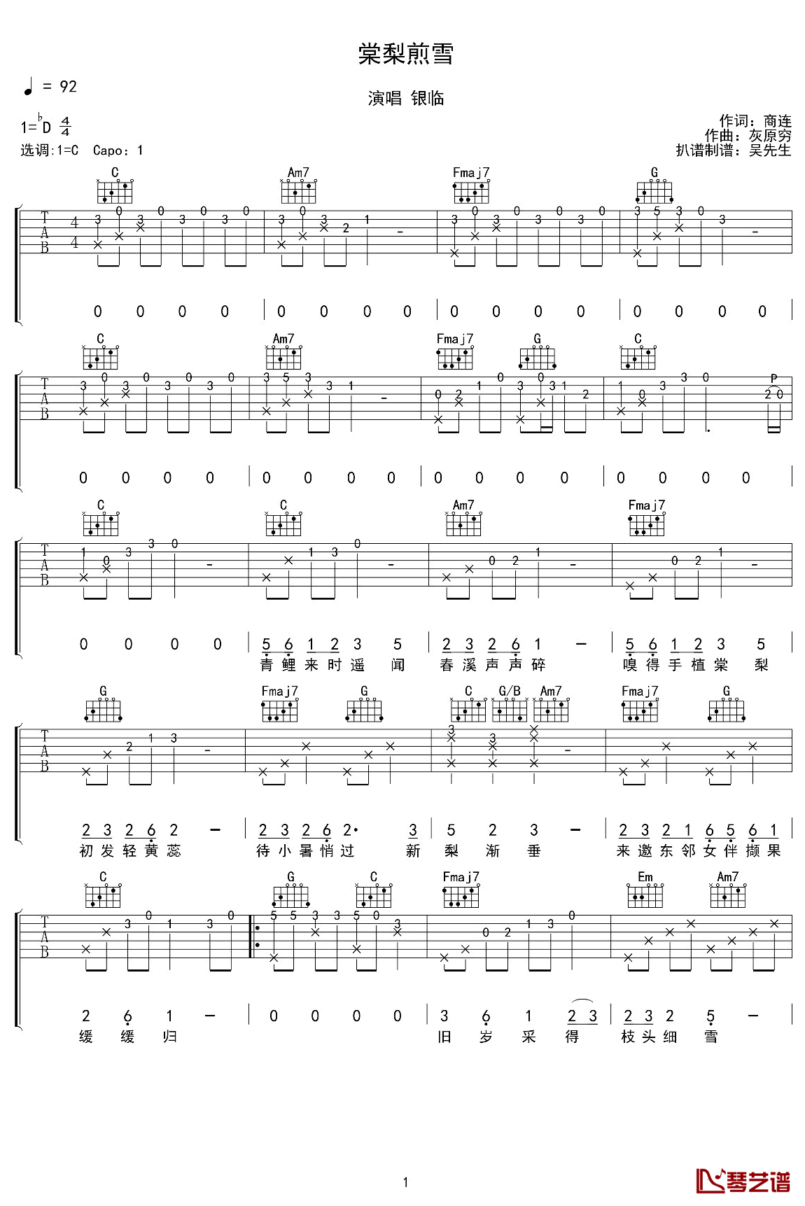吉他棠梨煎雪吉他谱 银临