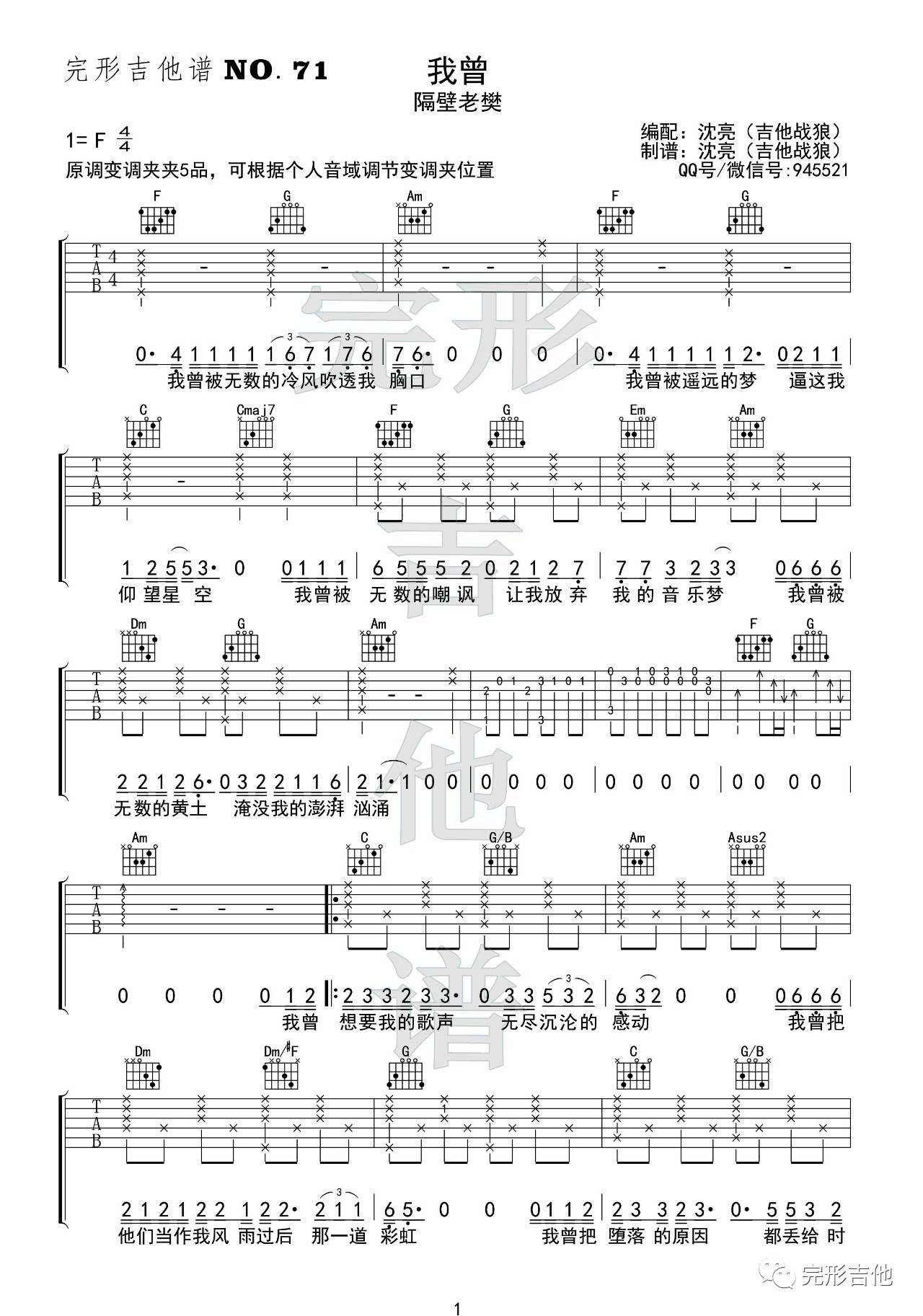 吉他我曾吉他谱 隔壁老樊 F 调