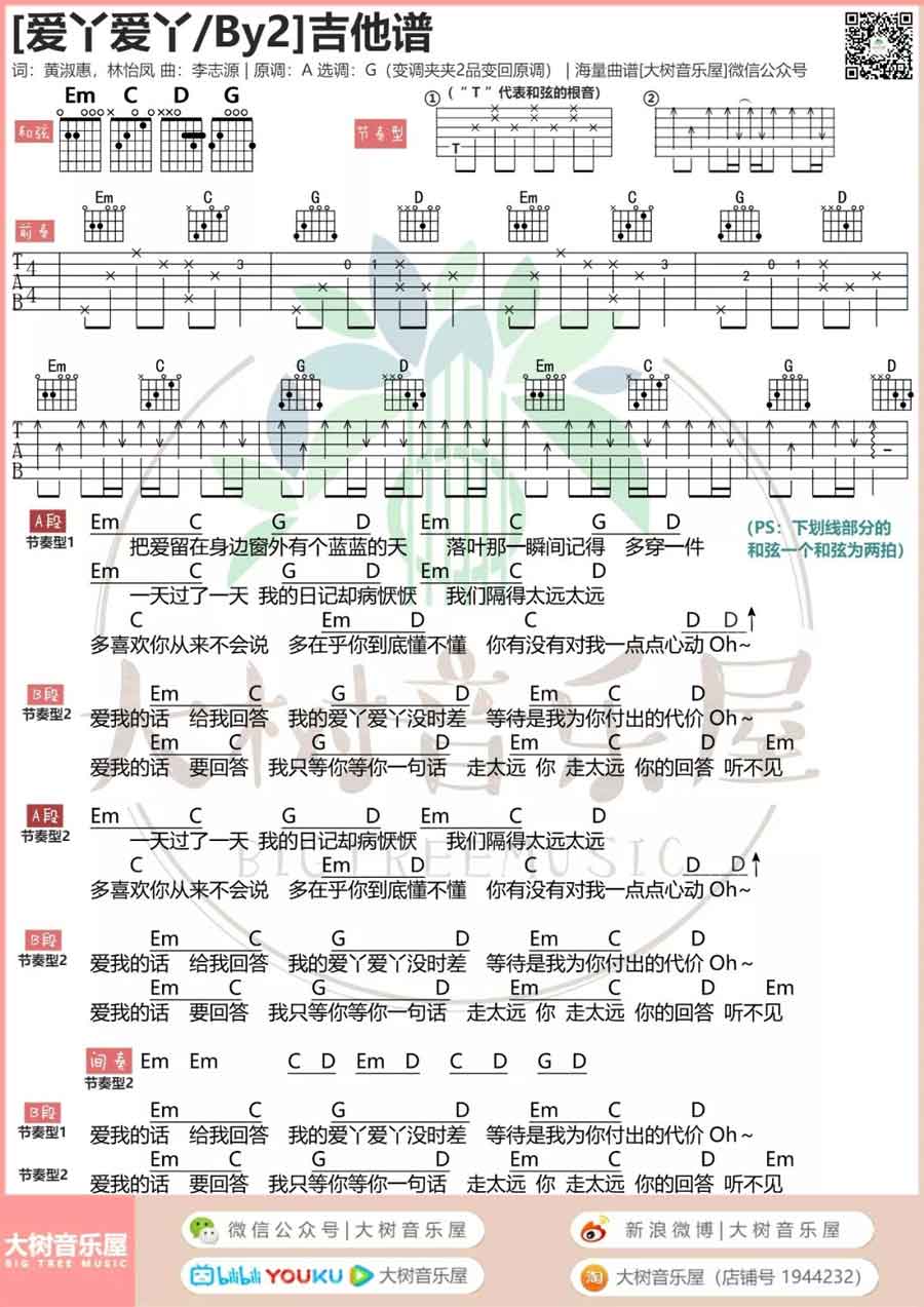 吉他爱丫爱丫吉他谱-by2