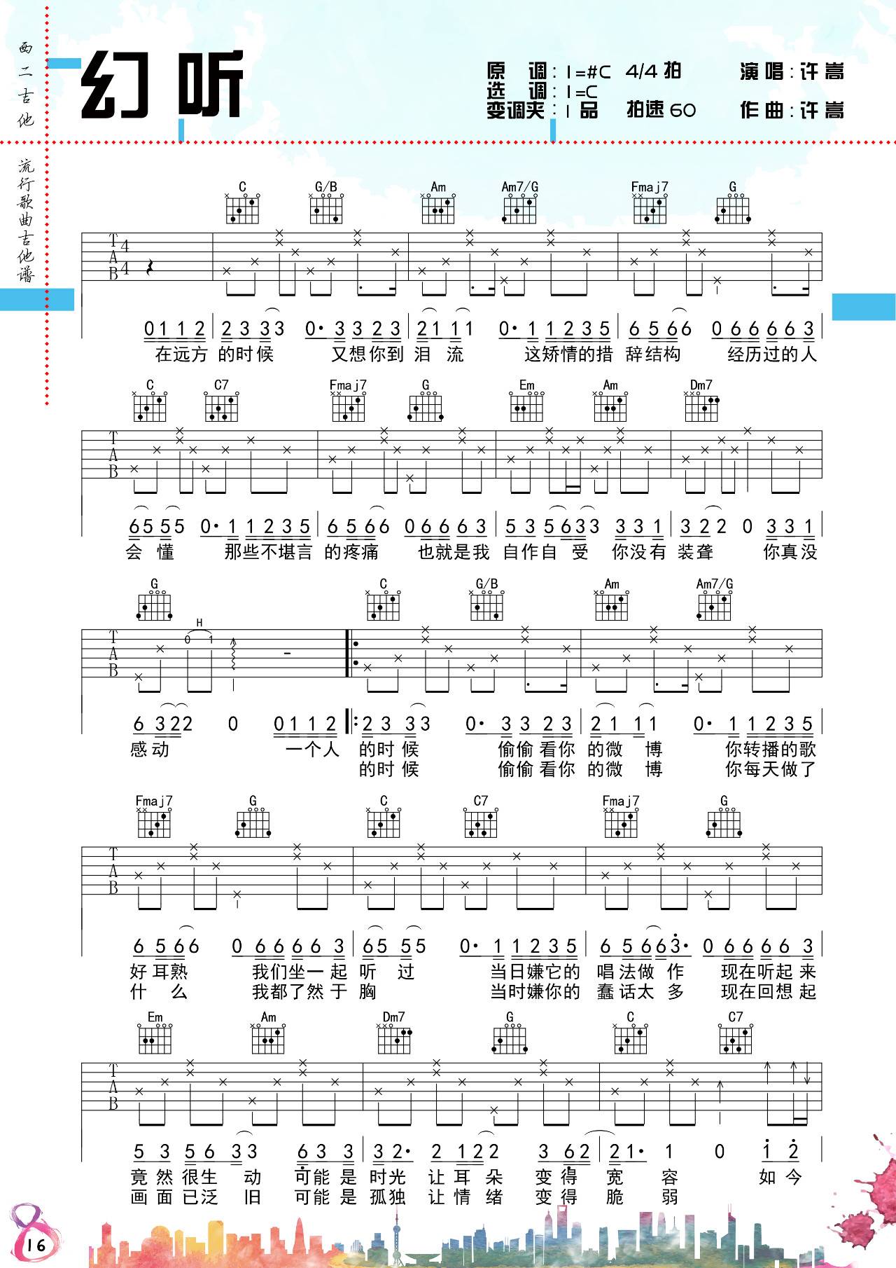 幻听吉他谱_许嵩选C变调夹1品来自西二吉他编配《幻听》吉他谱...