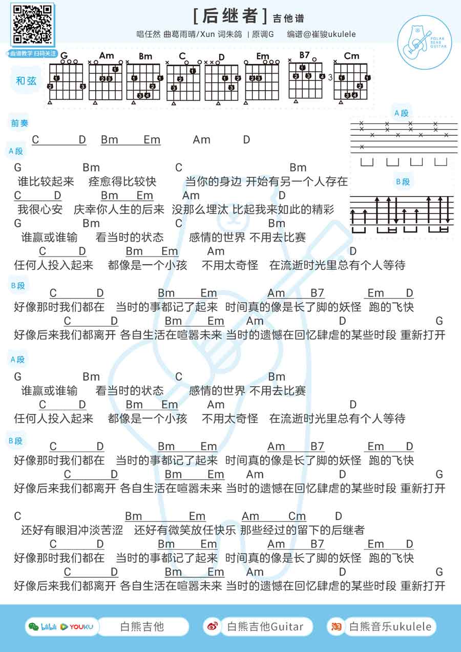 后继者吉他谱-任然本曲谱选调G和弦指法。...