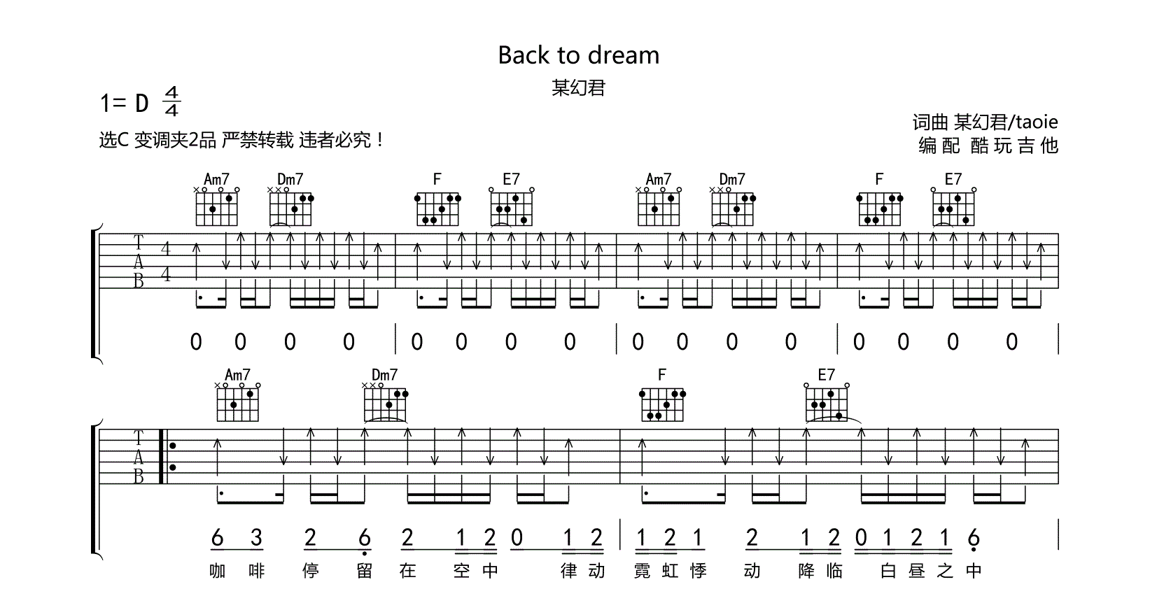 Backtodream吉他谱某幻君up主就是好比版选C变调夹2品点击进入相关视频/视频观看试听...