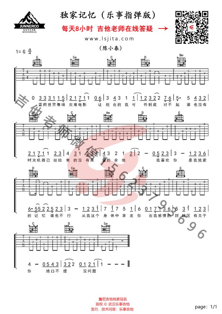 陈小春《独家记忆》吉他指弹谱...