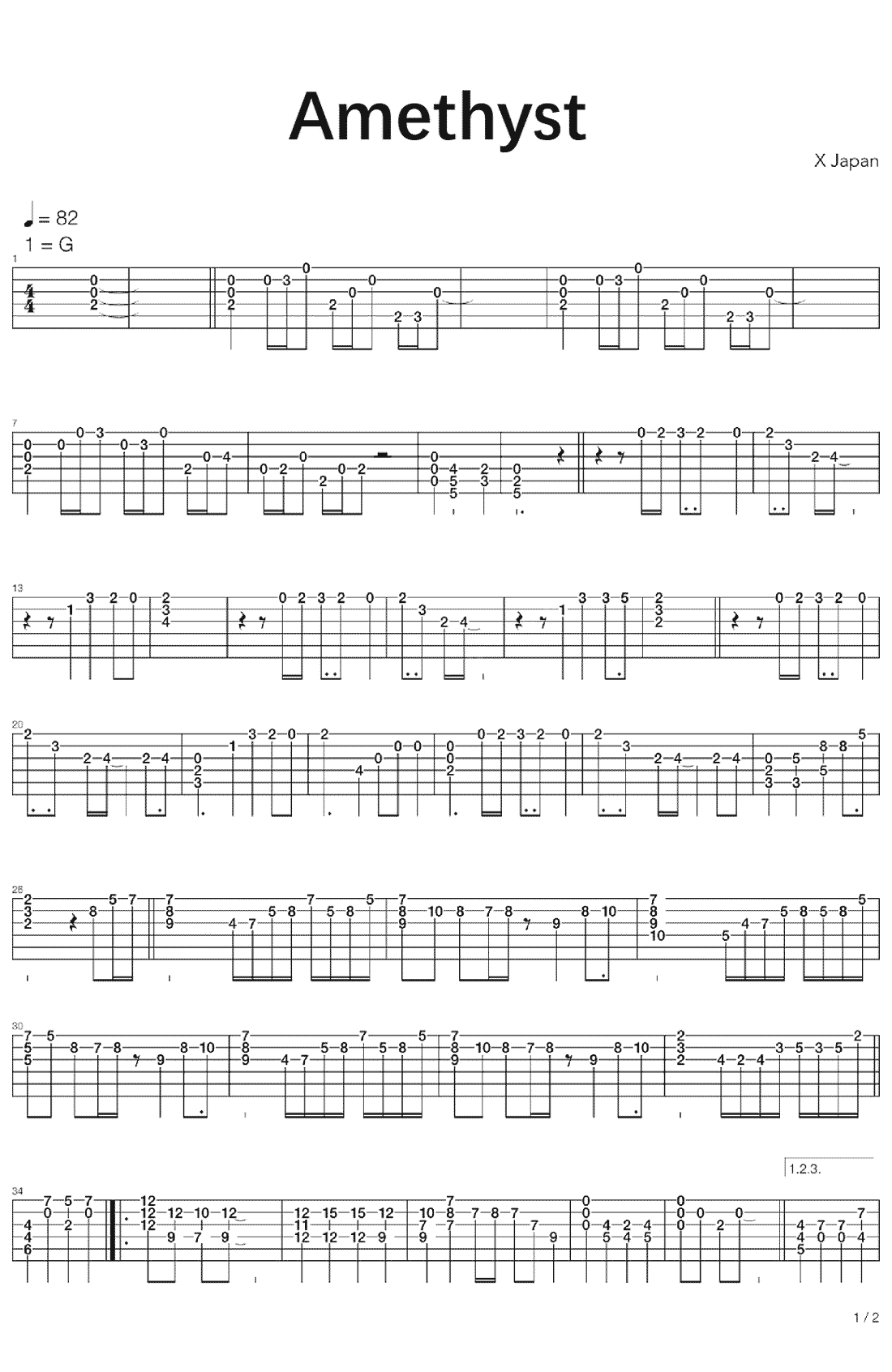 Amethyst吉他谱-XJapan本曲谱选调1=G,节拍:84。《Amethyst》指弹,独奏谱,...
