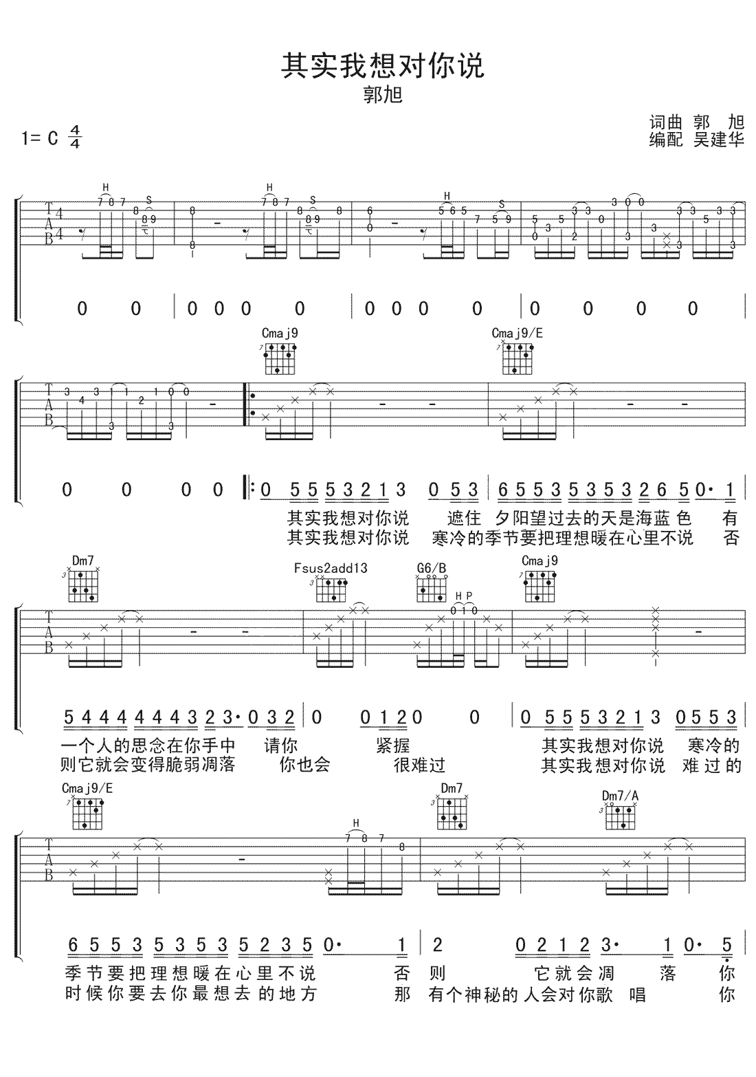 其实我想对你说吉他谱郭旭曲谱选调1=C...