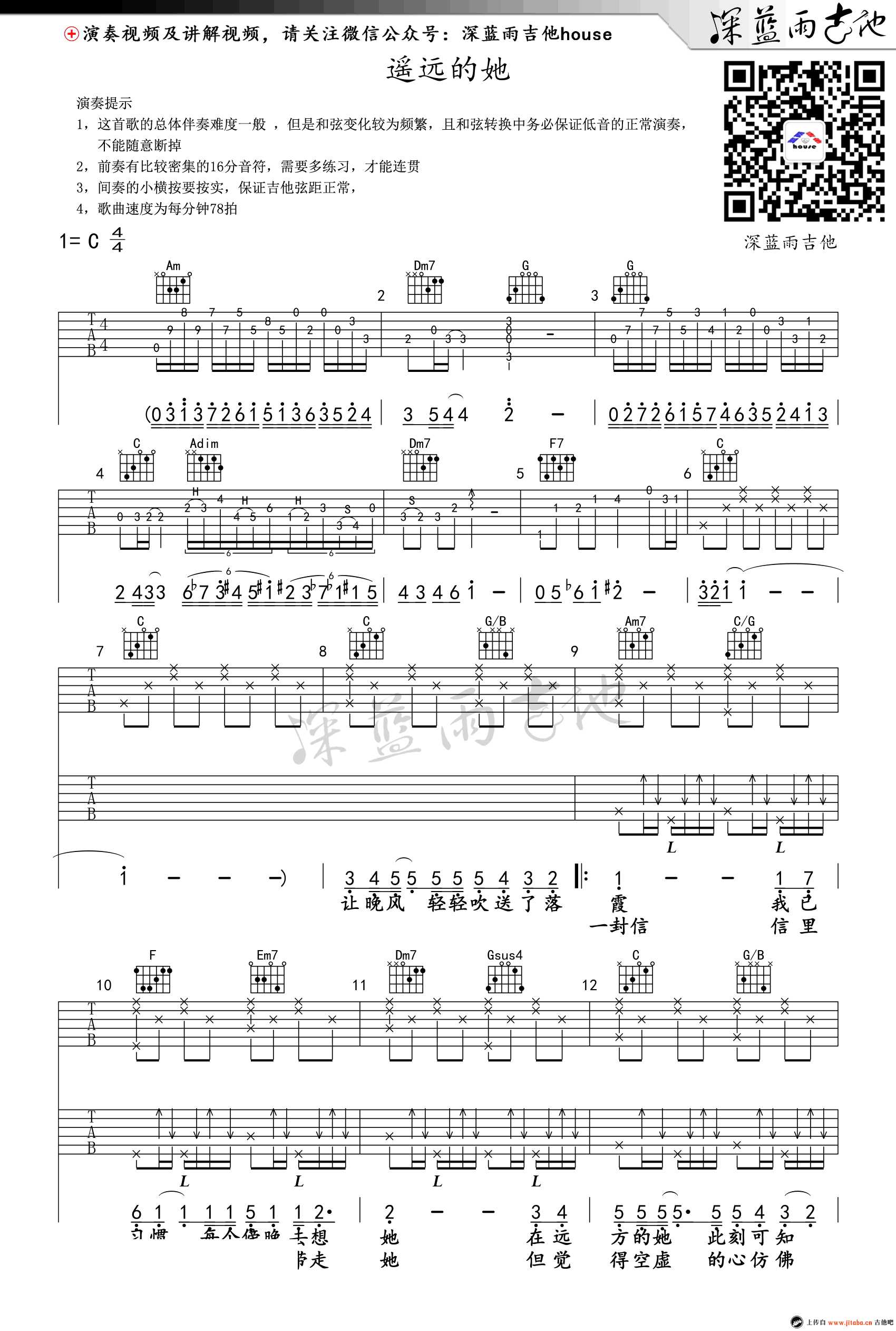 遥远的她吉他谱张学友感谢深蓝雨为琴友们编配曲谱...