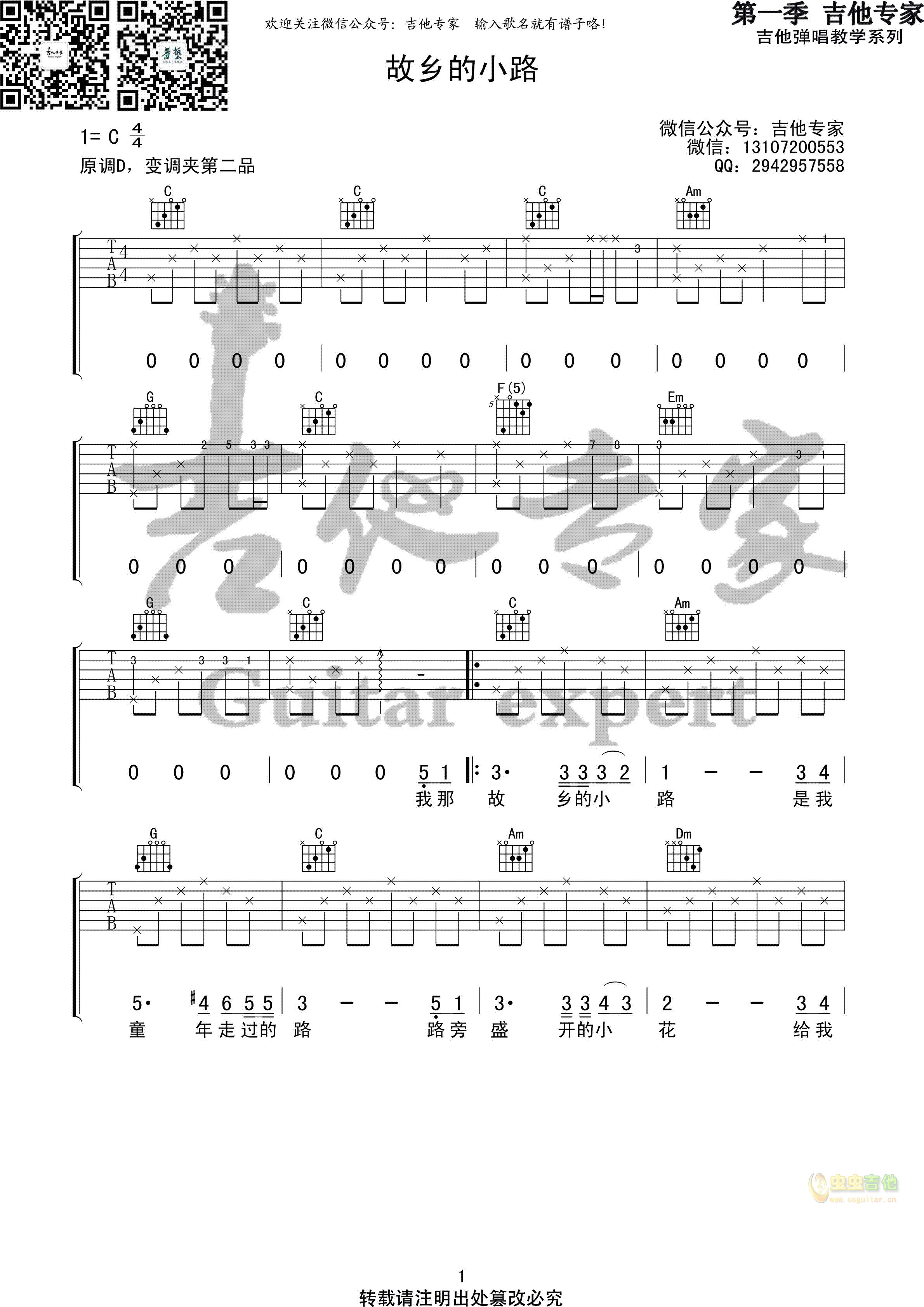 吉他故乡的小路 吉他谱
