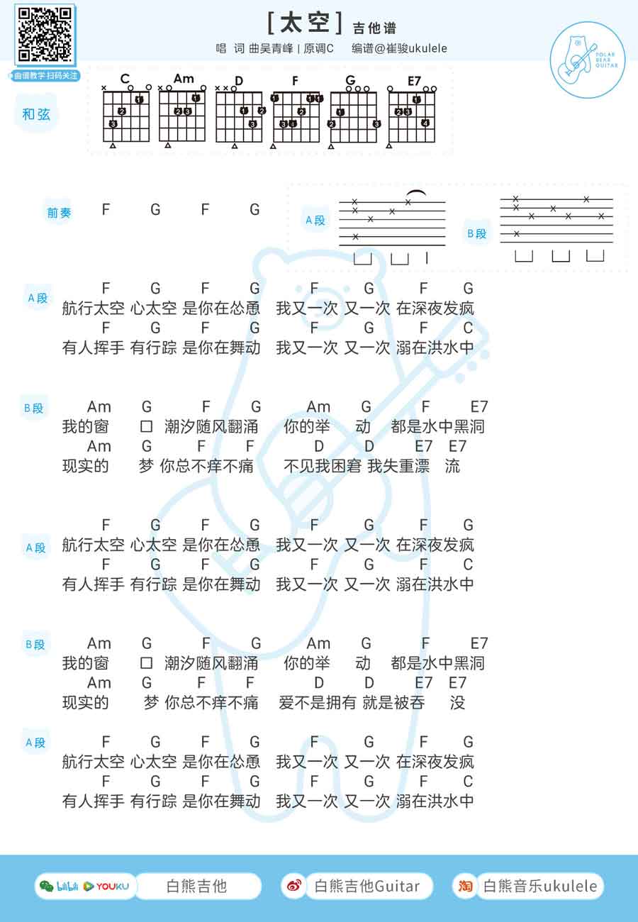 太空吉他谱吴青峰和弦谱曲谱选调C。《太空》吉他弹唱谱,感谢白熊吉他制谱...