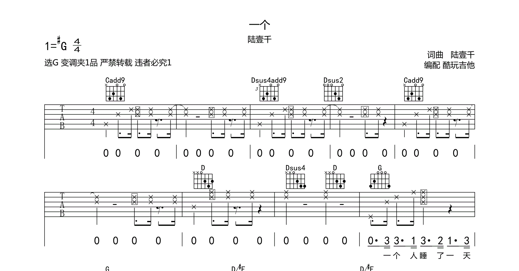 吉他一个 吉他谱 陆壹千