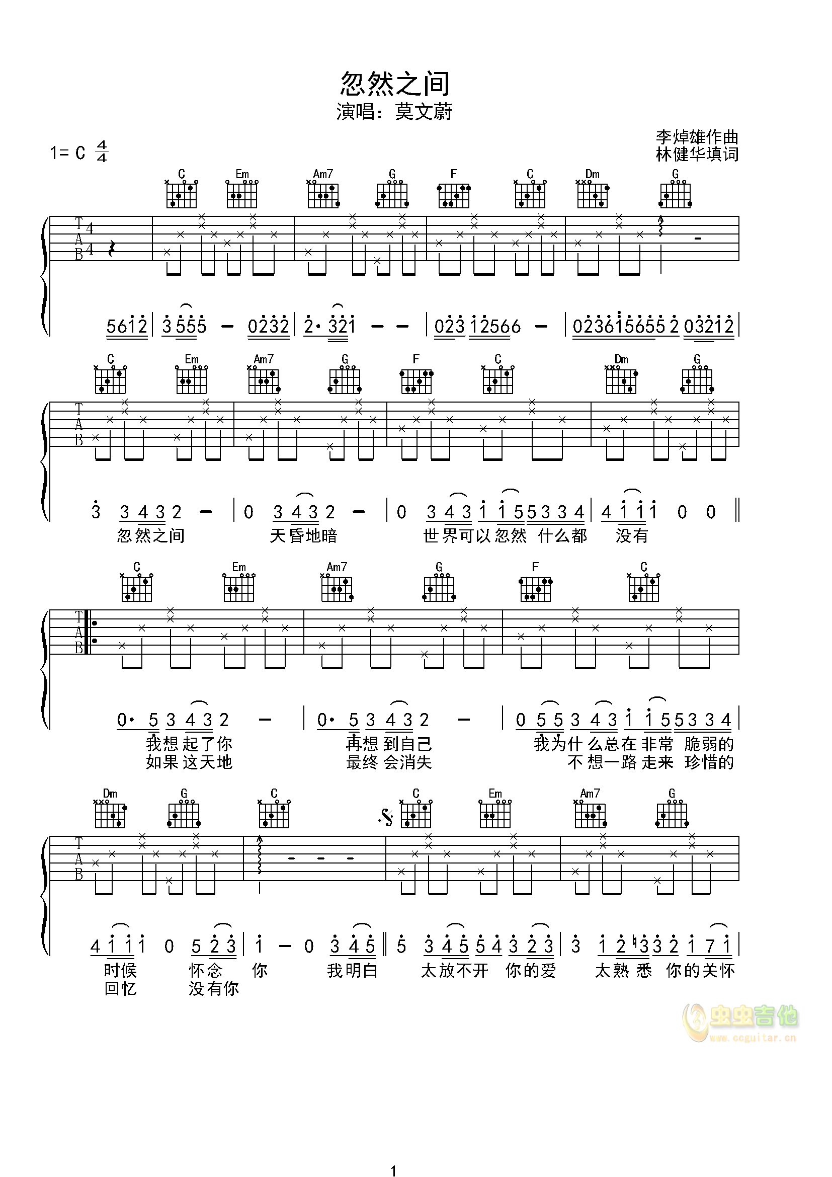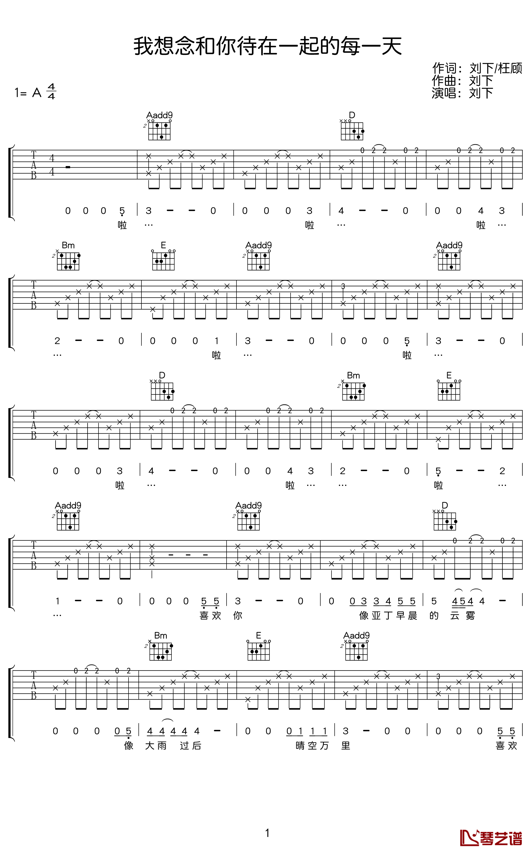 吉他 我想念和你待在一起的每一天 吉他谱 刘下