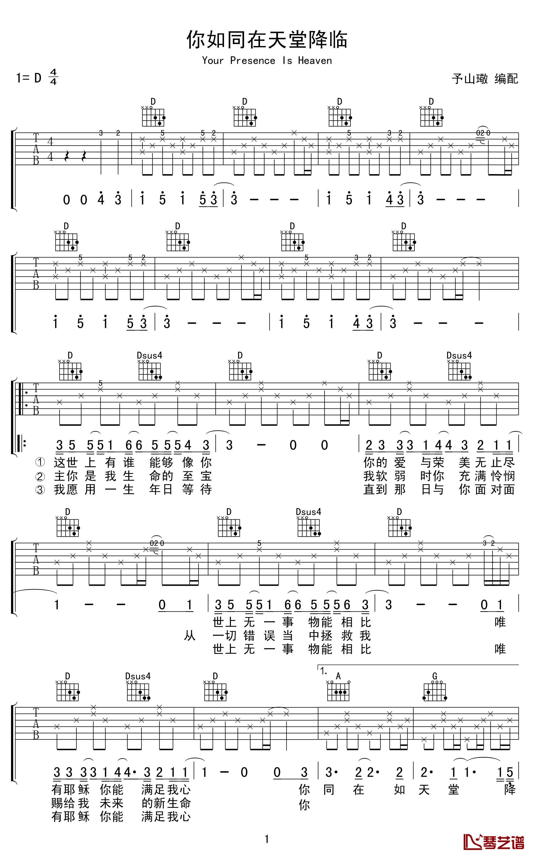 你如同从天堂降临吉他谱予山璥编选D予山璥编...