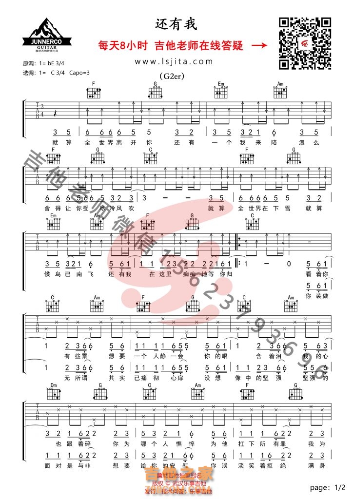 《还有我》吉他谱《还有我》原唱是任贤齐,先有G2er进行翻唱版本是G2er的...