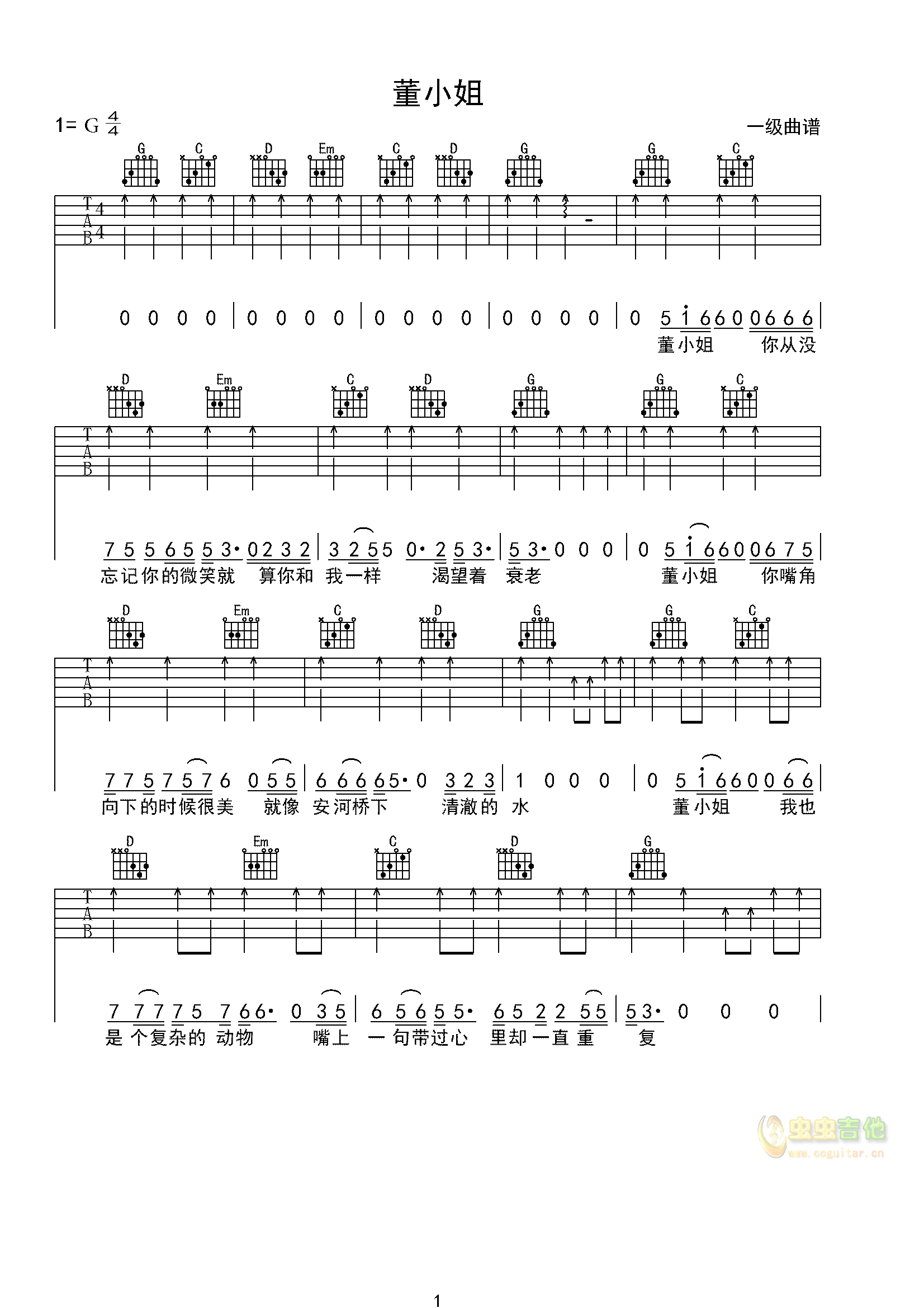 也罢吉他谱刘佳琪中国好声音3期选G变调夹1品...