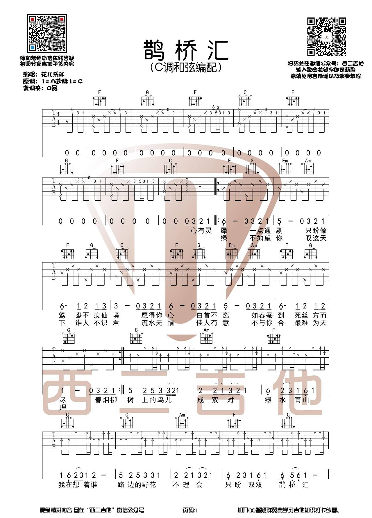 鹊桥汇吉他谱_花儿乐队来自西二吉他编配的《鹊桥汇》吉他谱,分男生和女生两个版本...