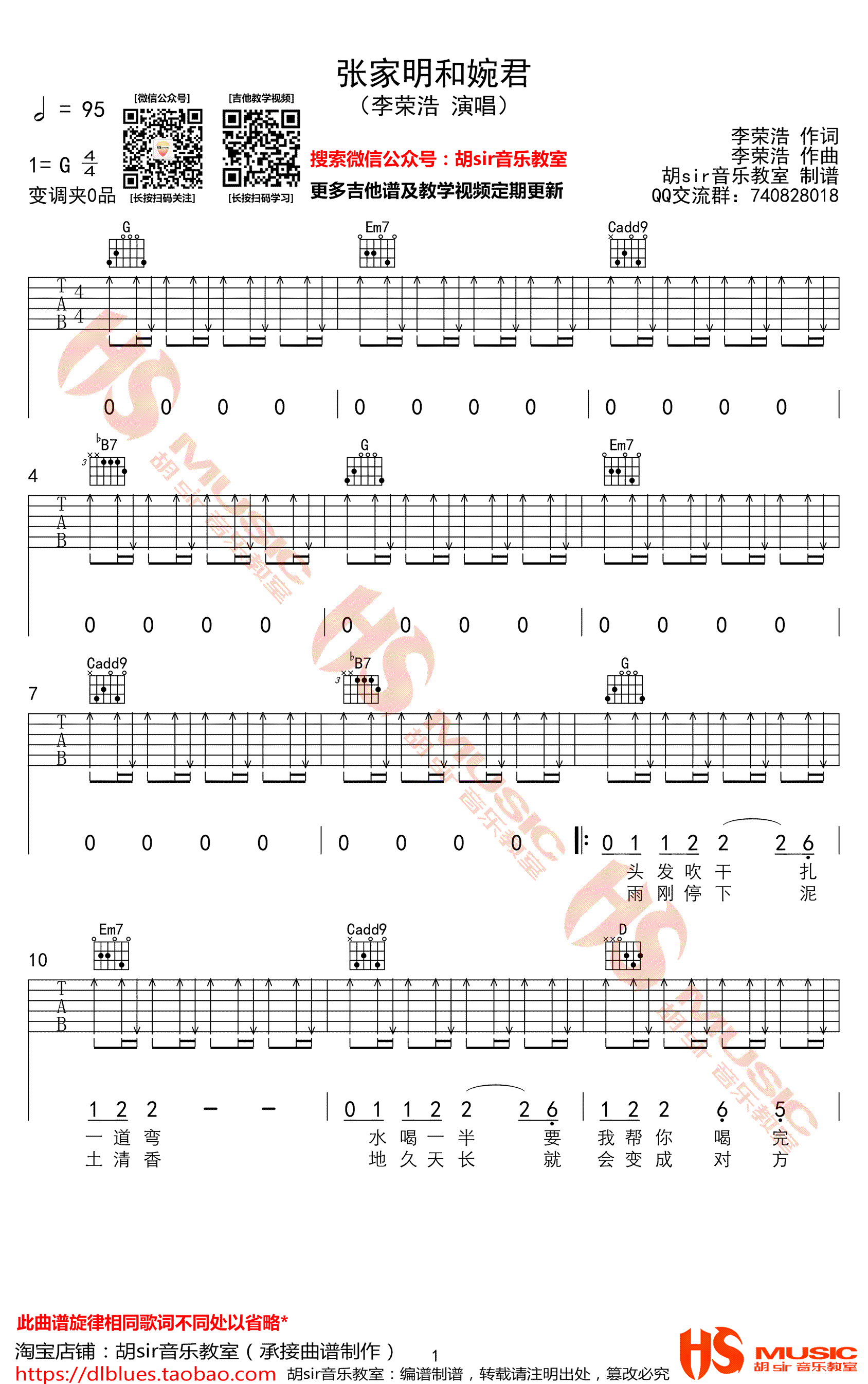 张家明和婉君吉他谱李荣浩胡sir音乐教室出品...