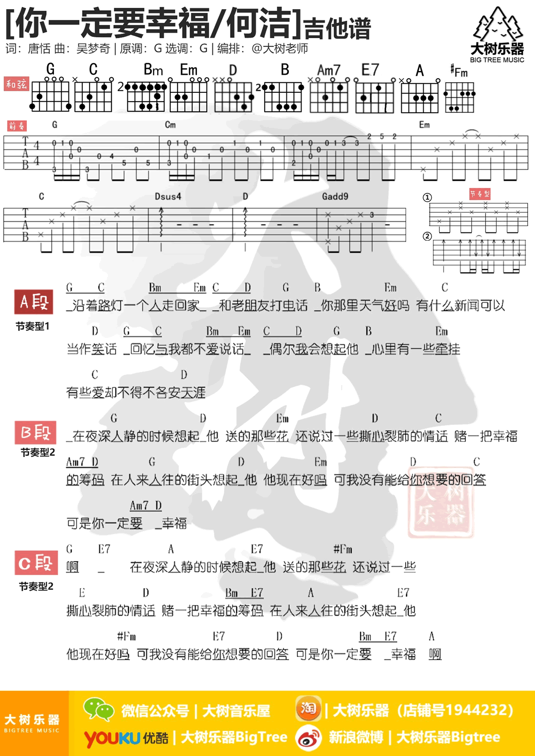你一定要幸福吉他谱何洁大树乐器编配出品。...