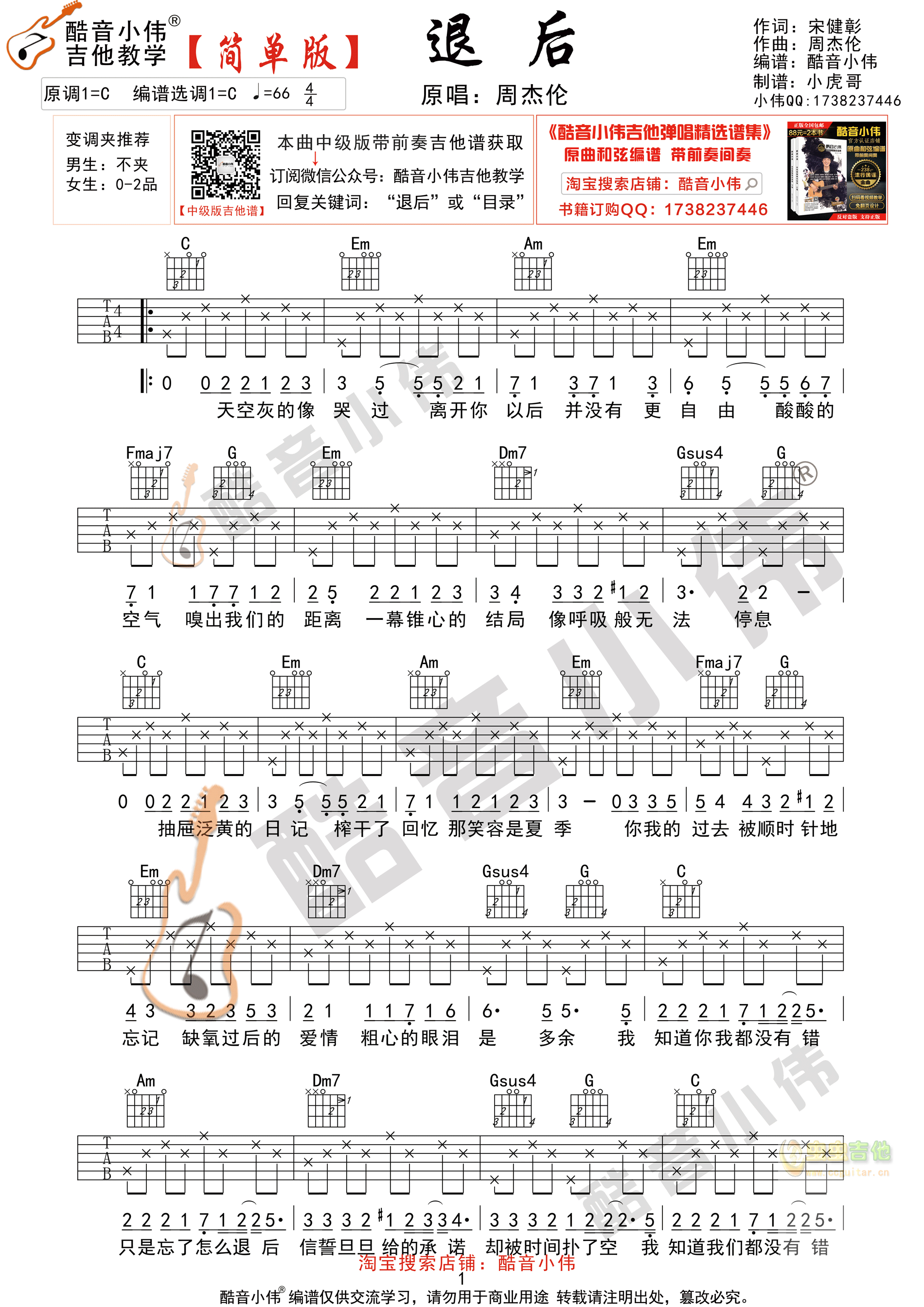 吉他周杰伦《退后》简单版 酷音小伟