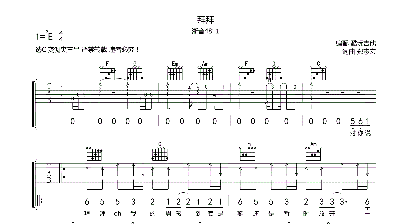 吉他拜拜 吉他谱 浙音4811