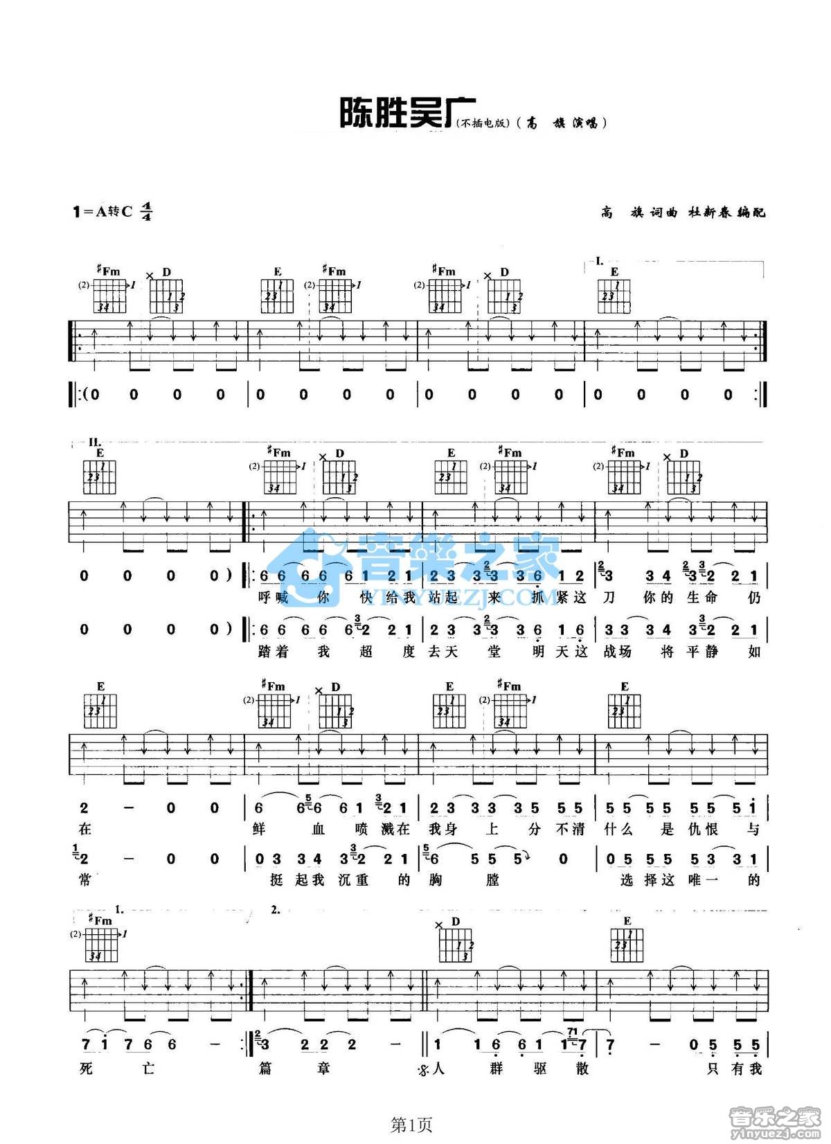 吉他高旗《陈胜吴广》吉他谱_吉他弹唱谱
