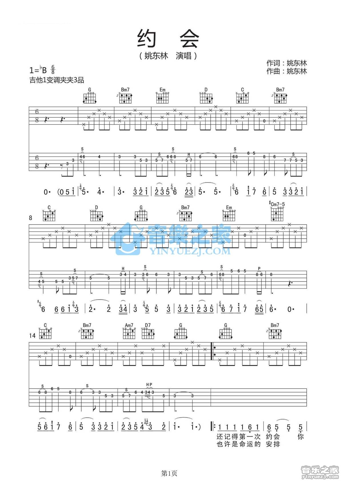 吉他姚东林《约会》吉他谱_吉他弹唱谱