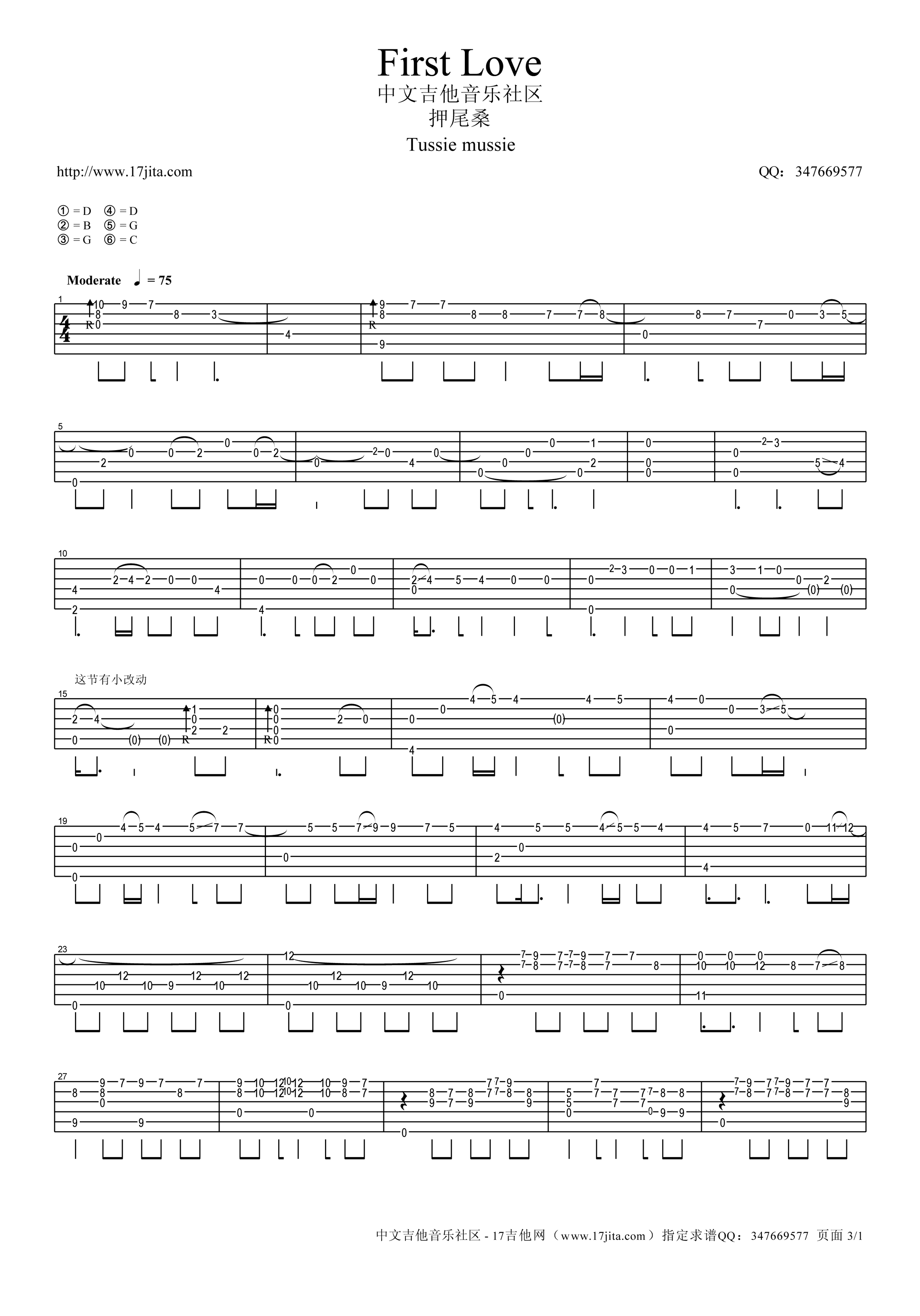 押尾桑FirstLove吉他谱六线谱【高清版】...
