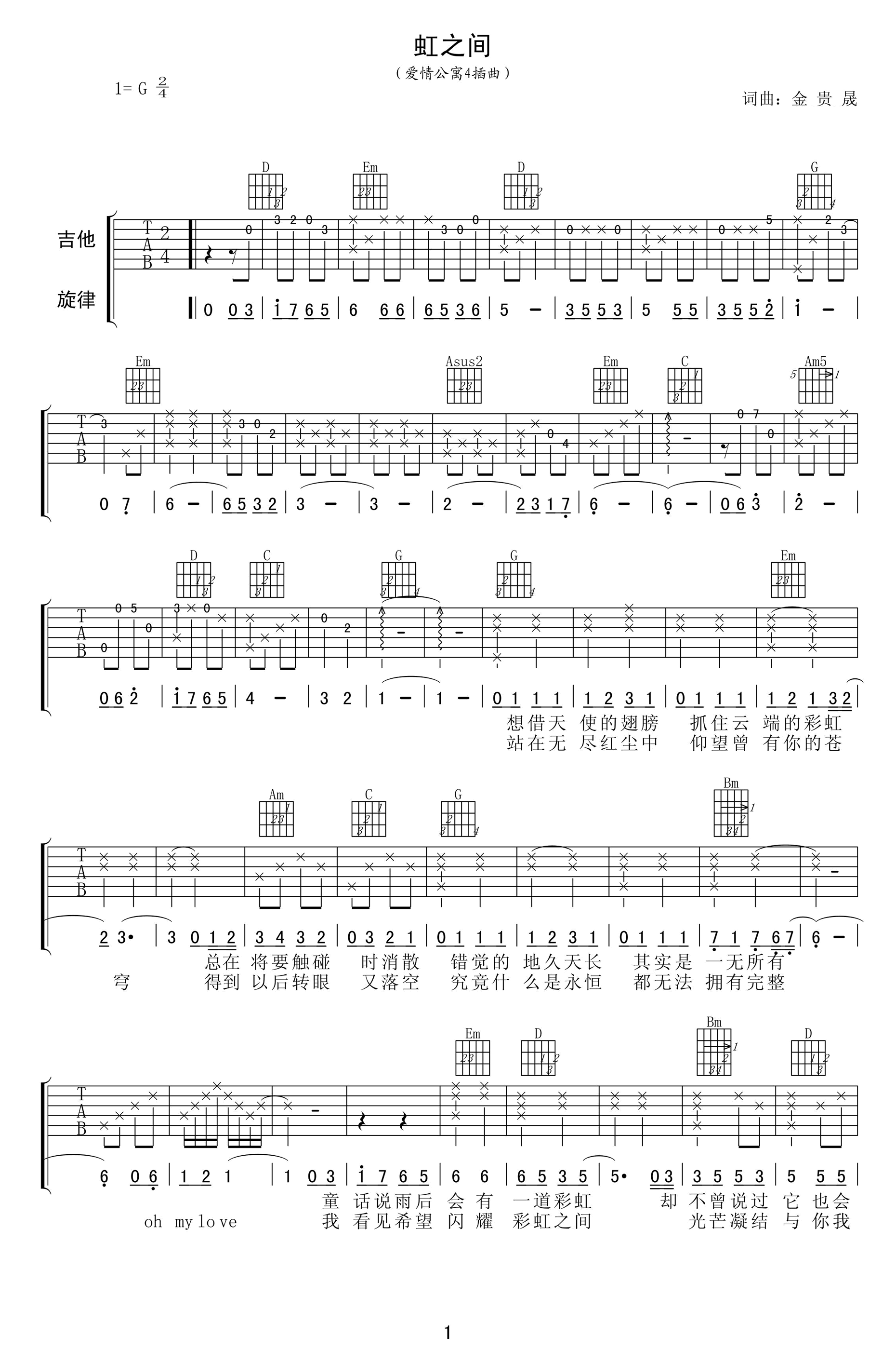吉他金贵晟《虹之间》吉他谱_吉他弹唱谱_梦断弦音编配