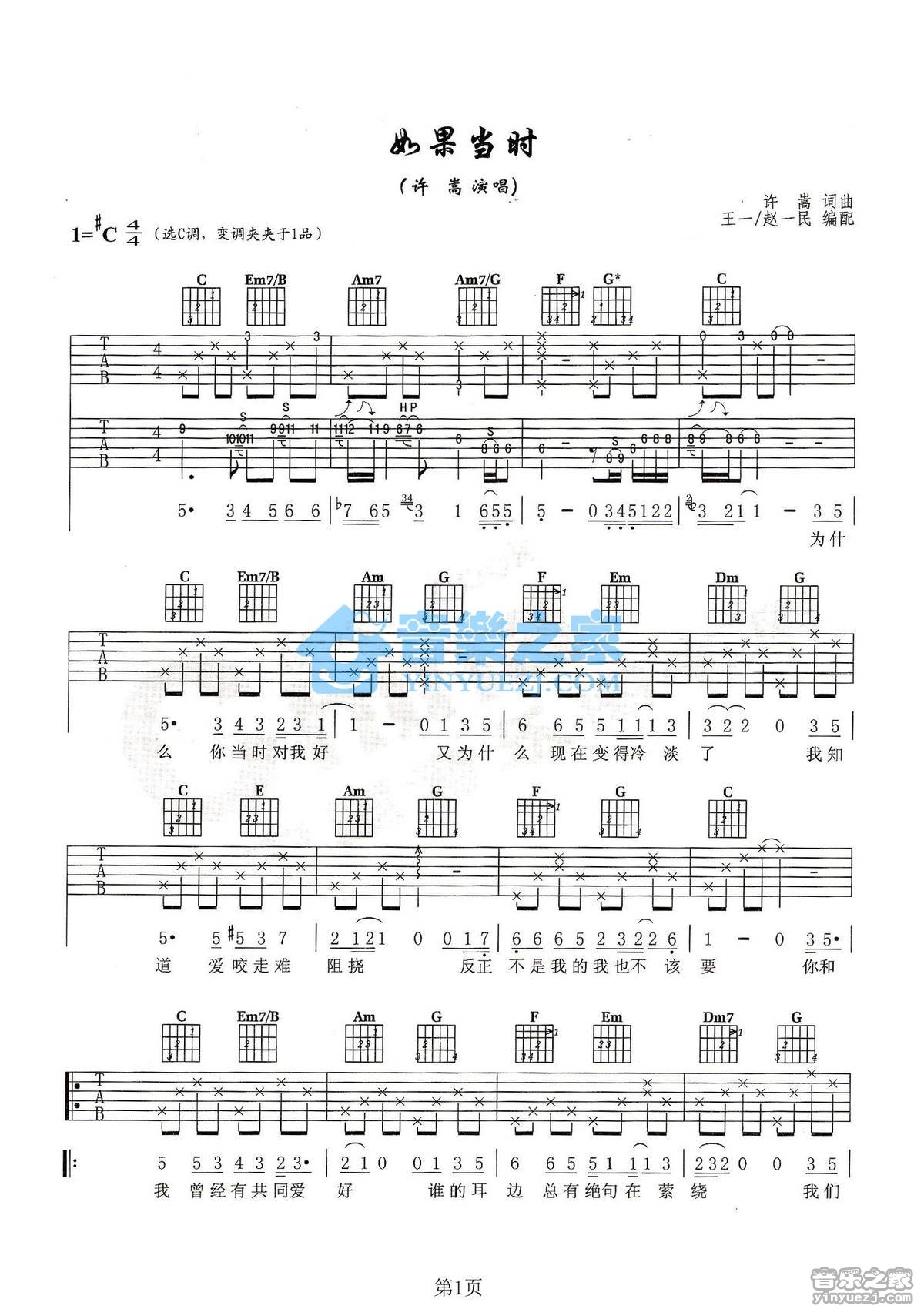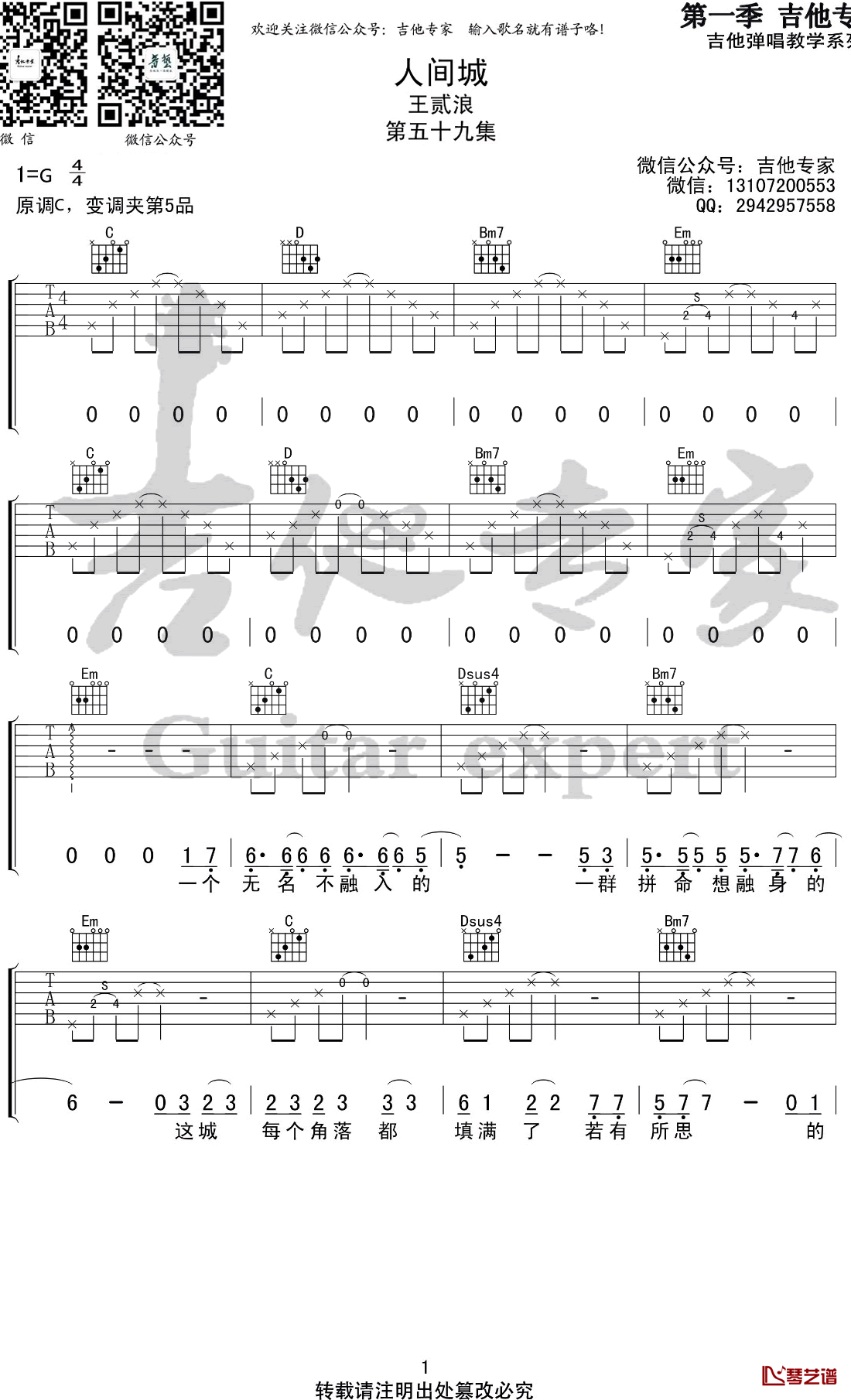 吉他雅俗共赏吉他谱 C调六线谱 许嵩
