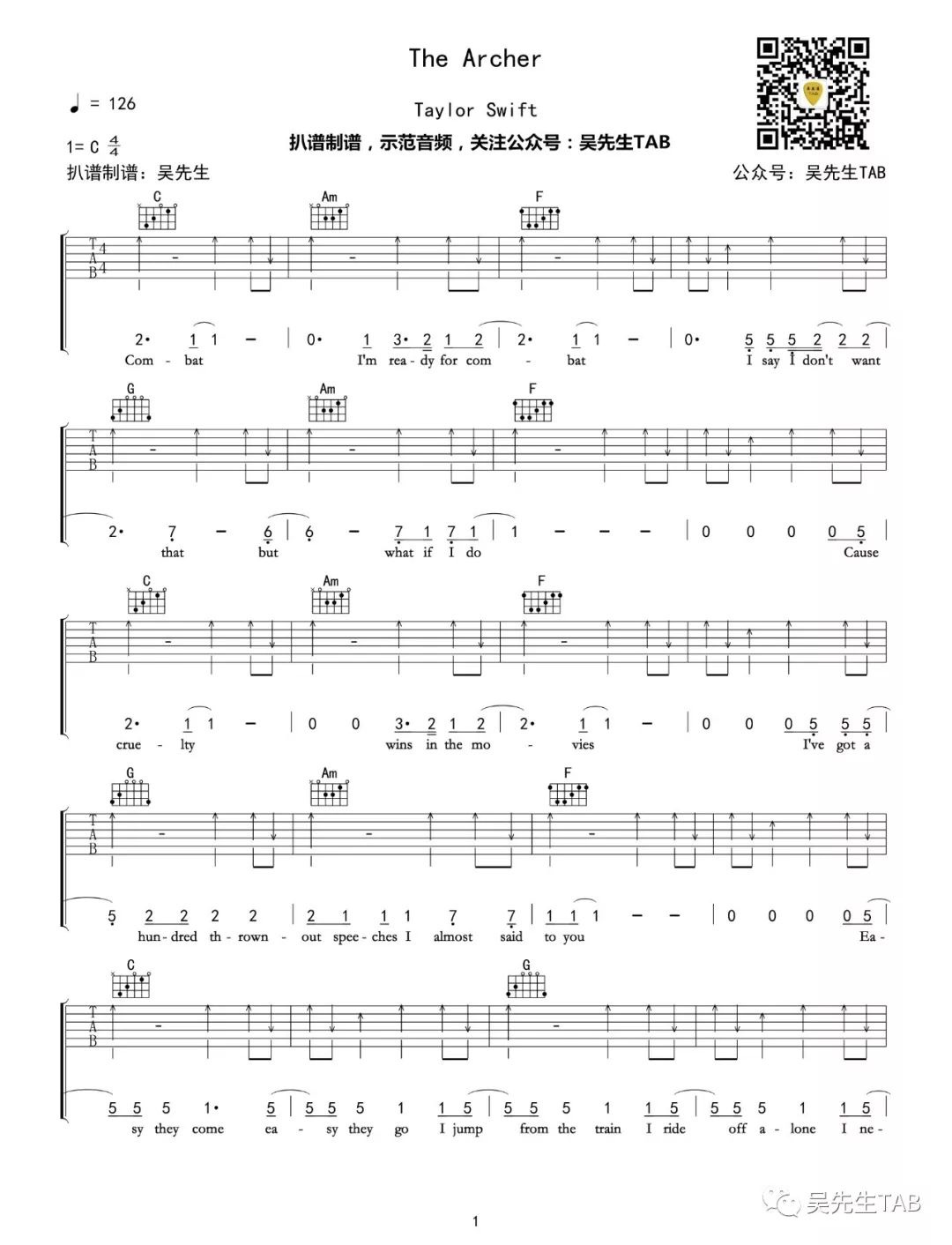 《TheArcher》吉他谱,共有5张高清图谱。...