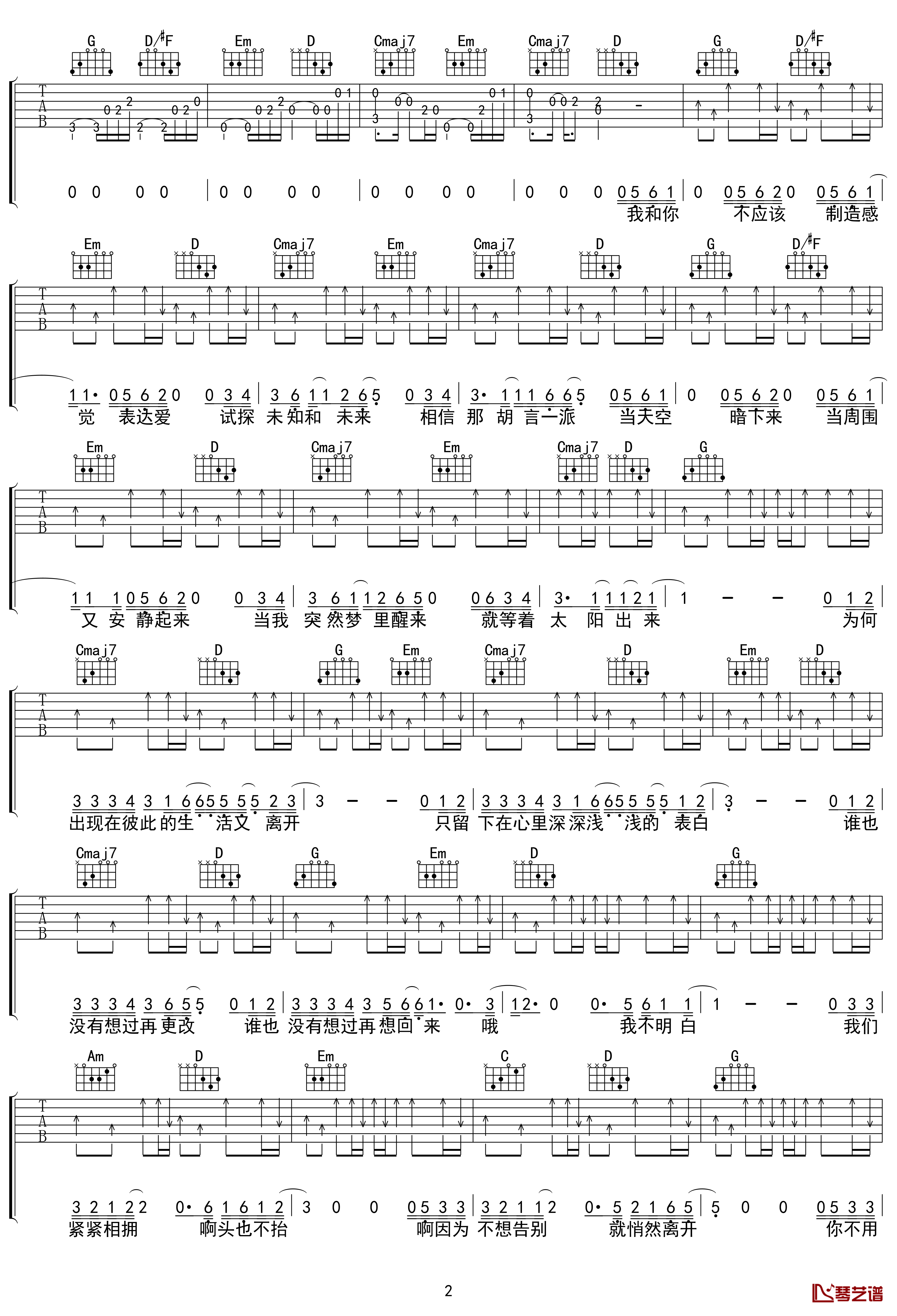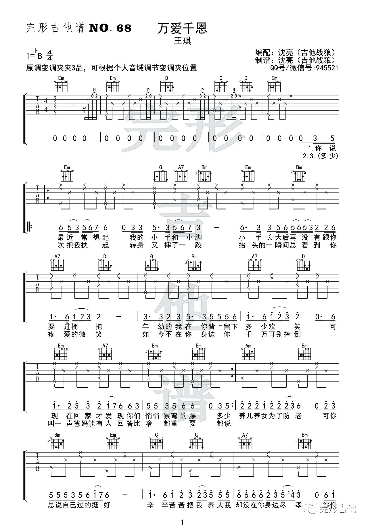 《万爱千恩》吉他谱,共有2张高清图谱,免翻页排版设计。...