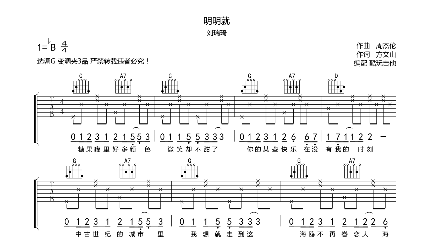 吉他明明就 吉他谱 刘瑞琦翻唱版