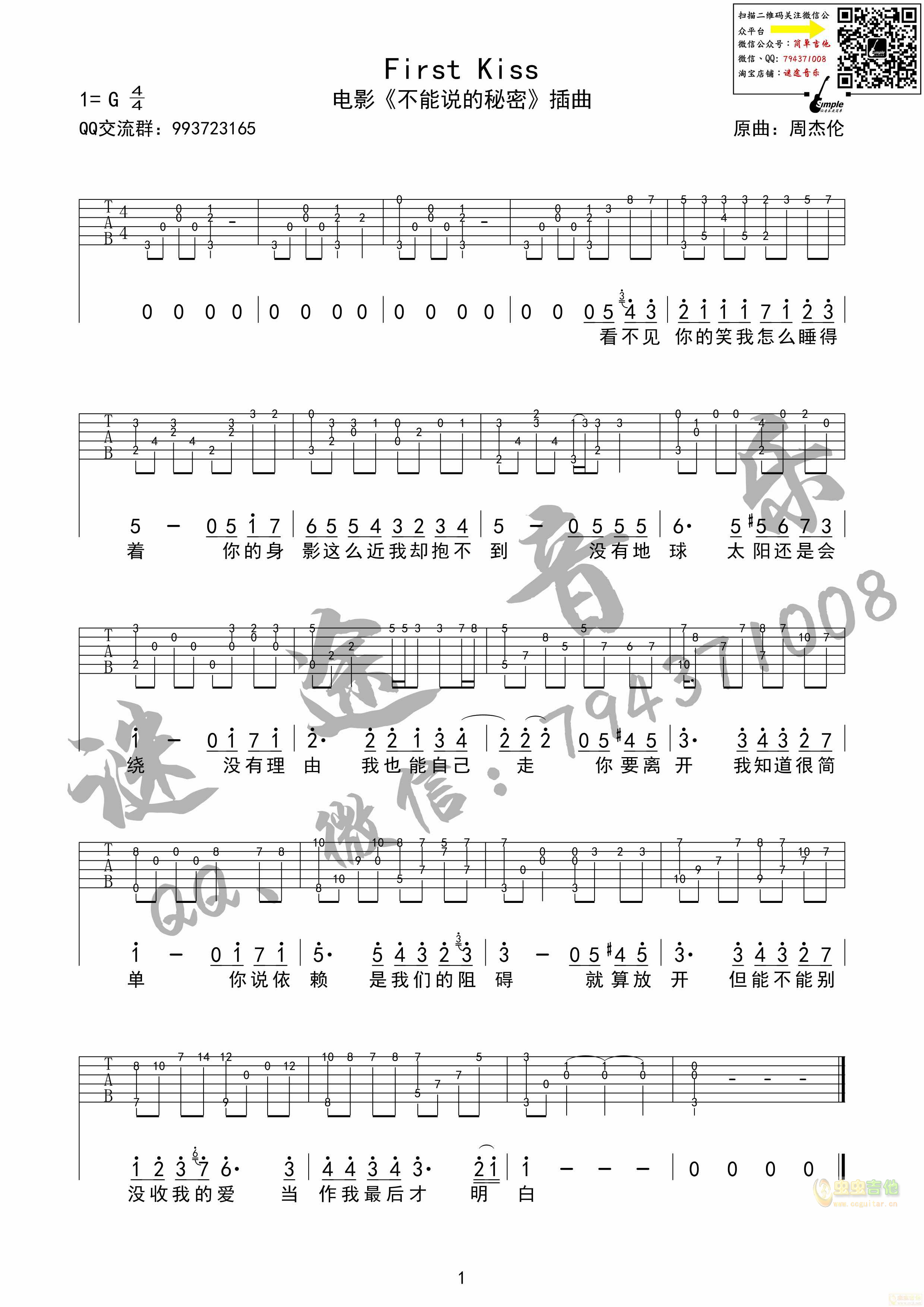 吉他《First Kiss》吉他谱 不能说的秘密插曲-周杰伦