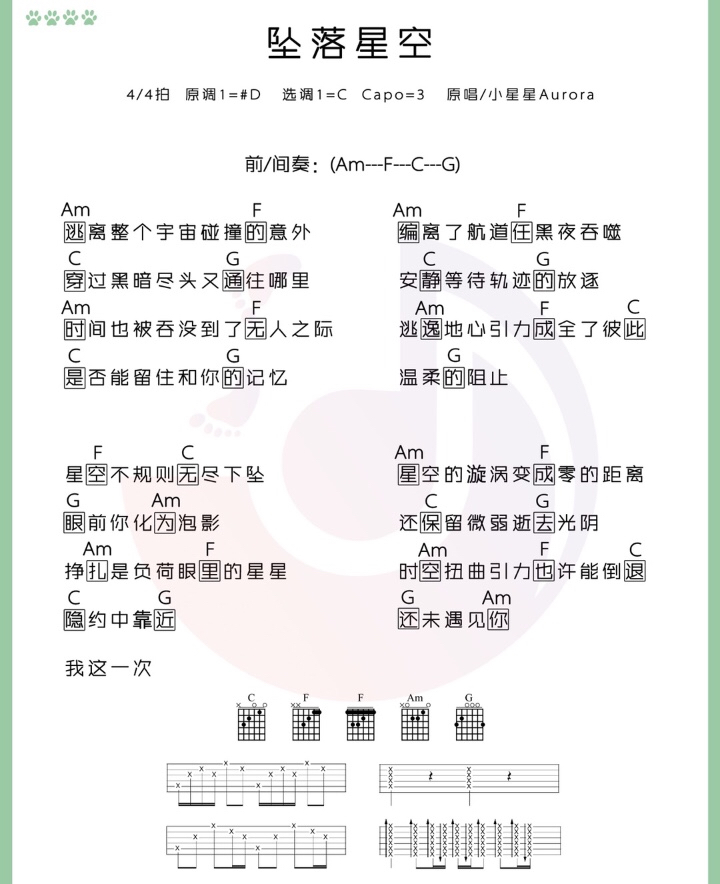 吉他坠落星空 吉他谱 和弦谱