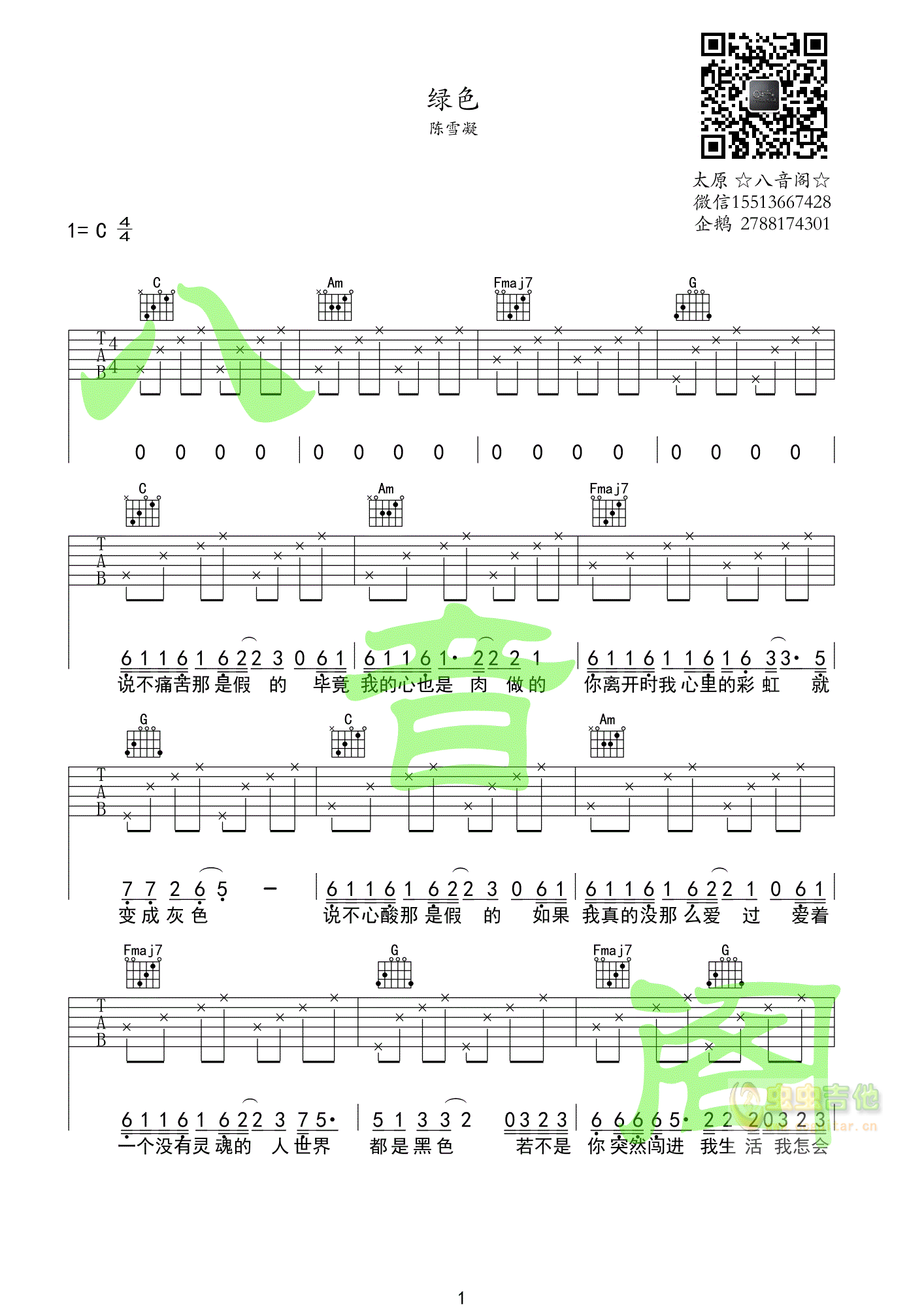 吉他陈雪凝《绿色》简单版吉他谱