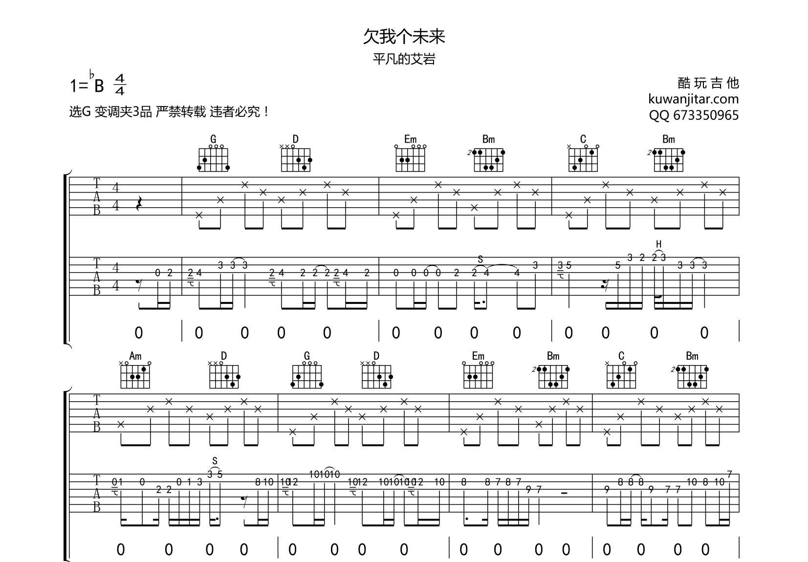 吉他欠我个未来 吉他谱 平凡的艾岩