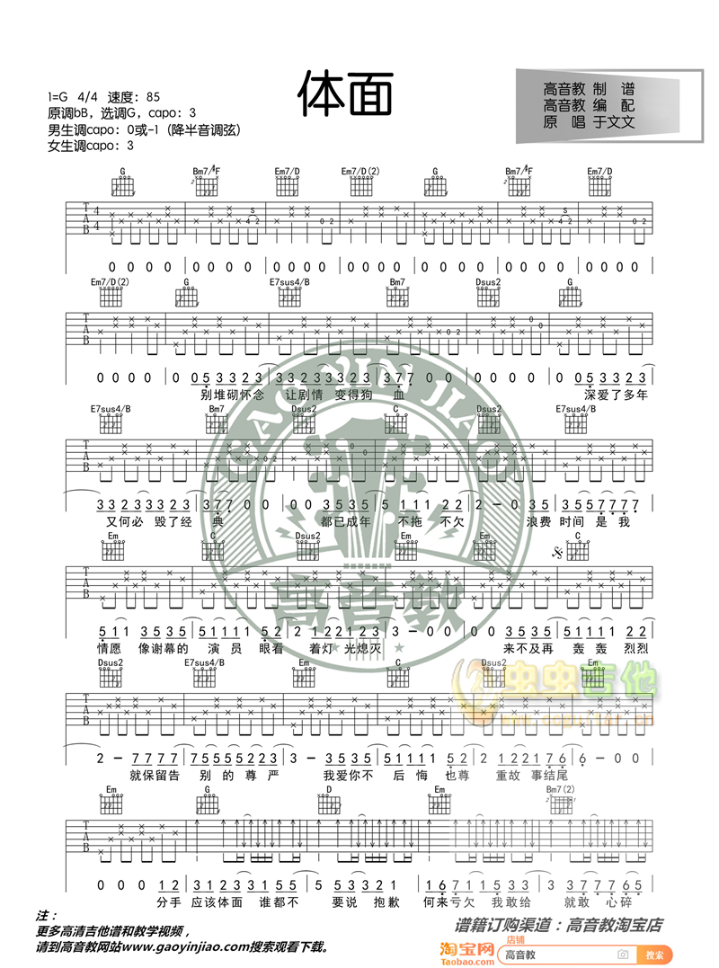 吉他体面 标准版 于文文 吉他谱