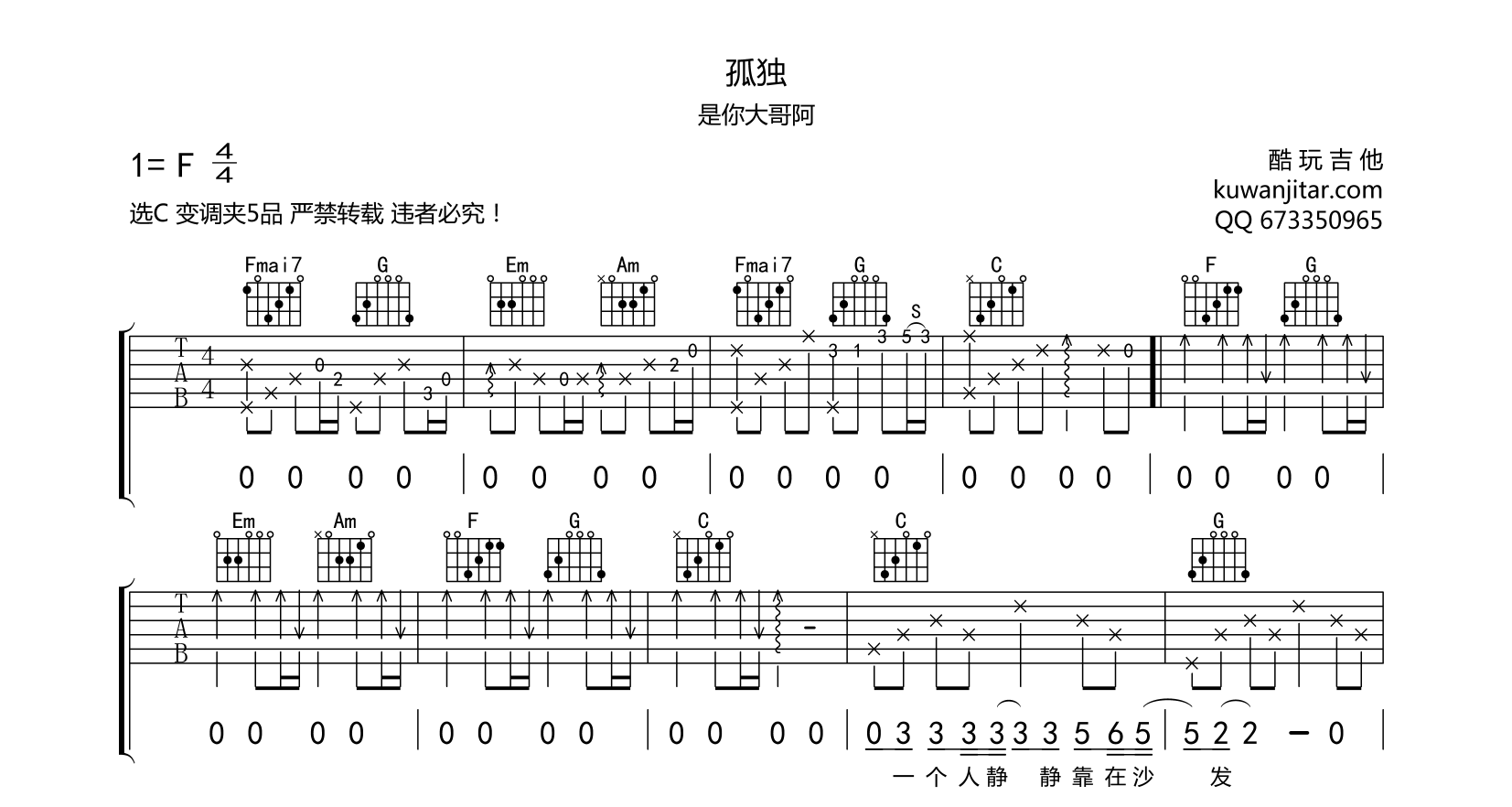 吉他孤独 吉他谱 抖音热门 是你大哥阿