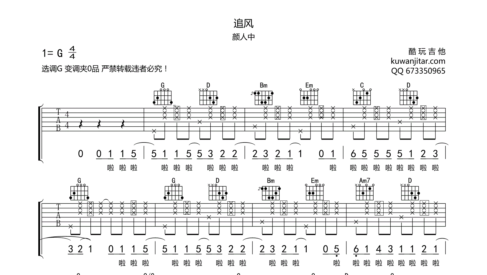 吉他追风 颜人中 吉他谱