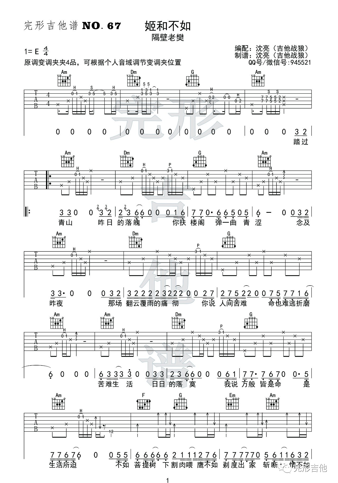 吉他妓和不如吉他谱_隔壁老樊