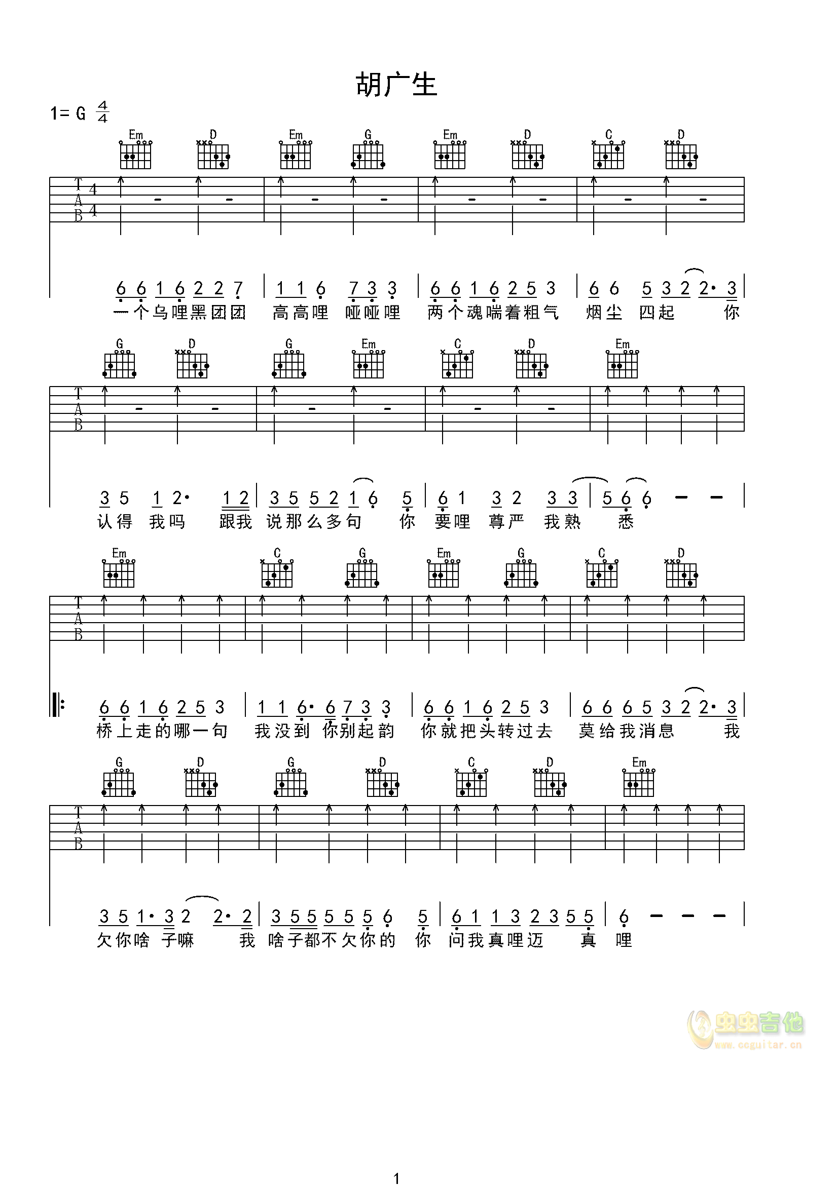 吉他任素汐 >>胡广生-新手超简易版