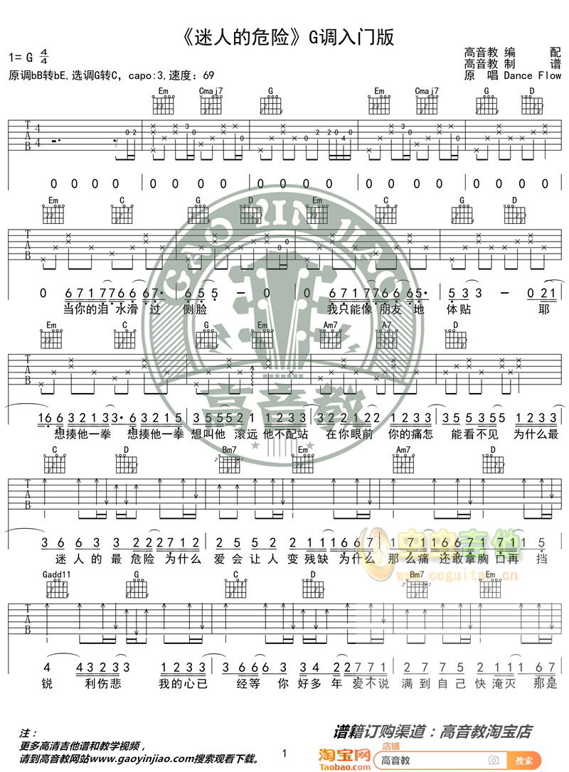 吉他《迷人的危险》吉他弹唱谱