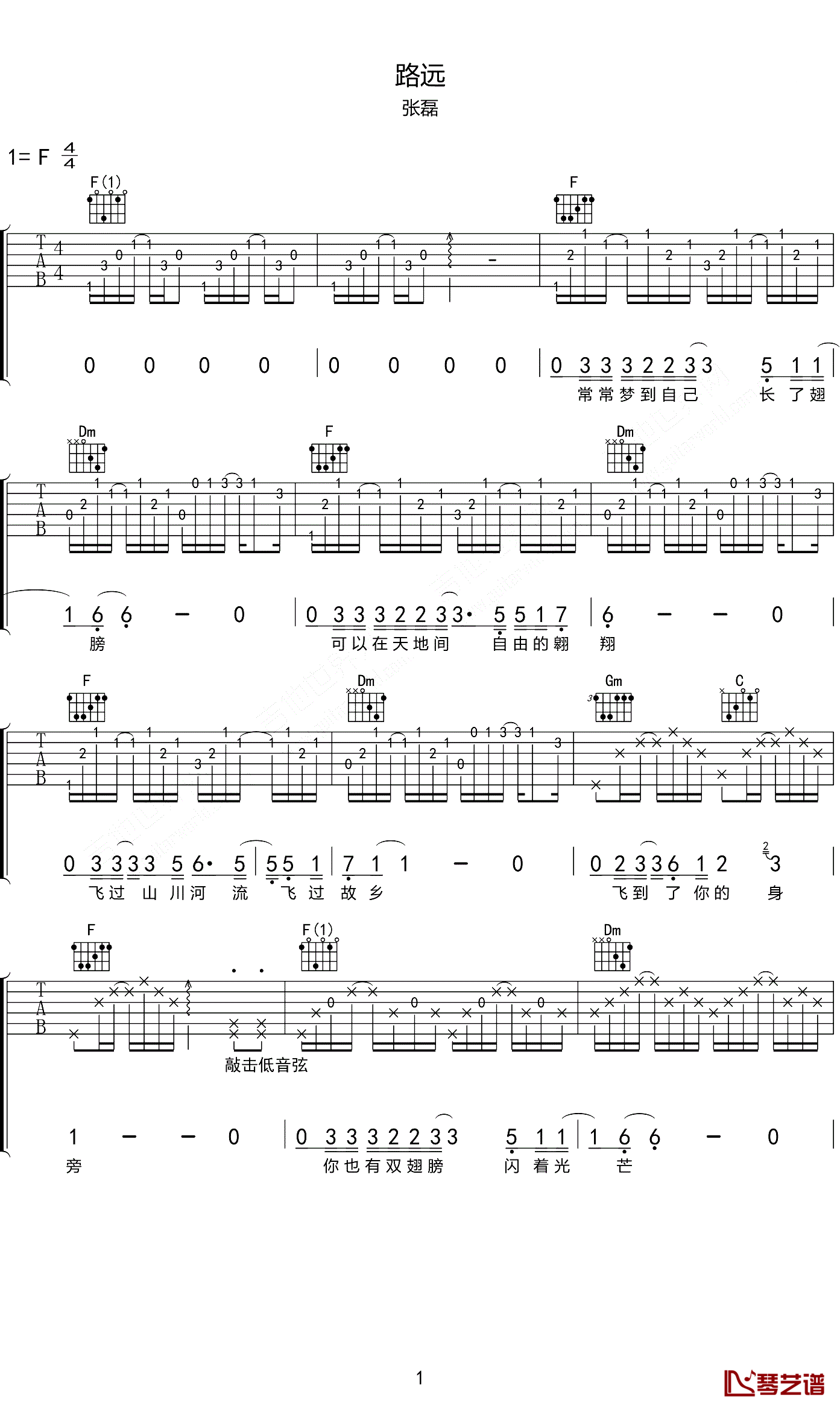 吉他路远 吉他谱 张磊
