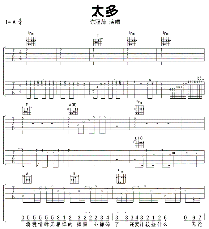 吉他太多吉他谱-陈冠蒲 两个版本