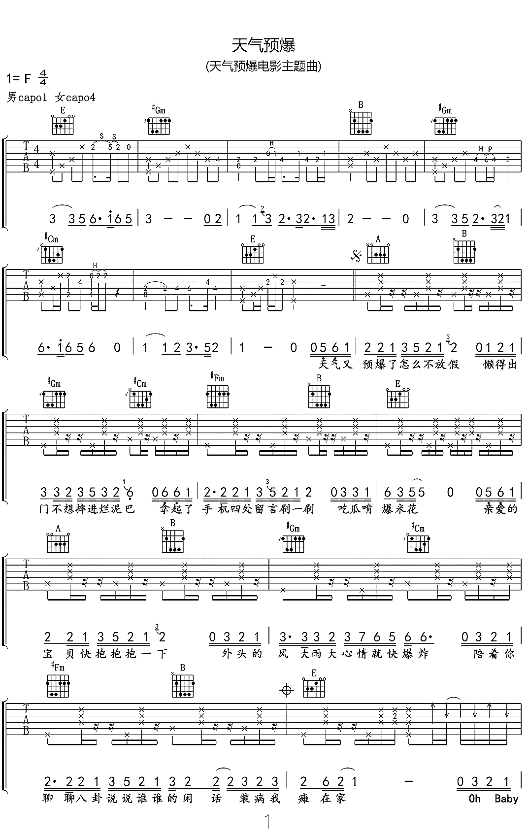 筷子兄弟《天气预爆》吉他谱...