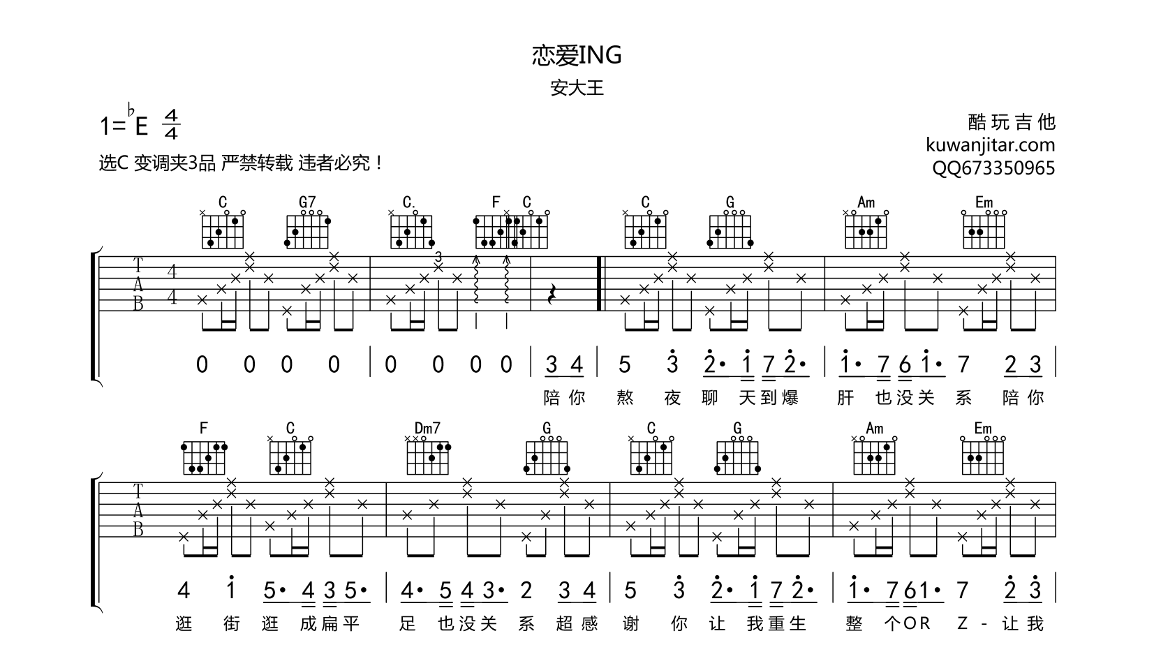 恋爱ING(晚安版)吉他谱安大王...