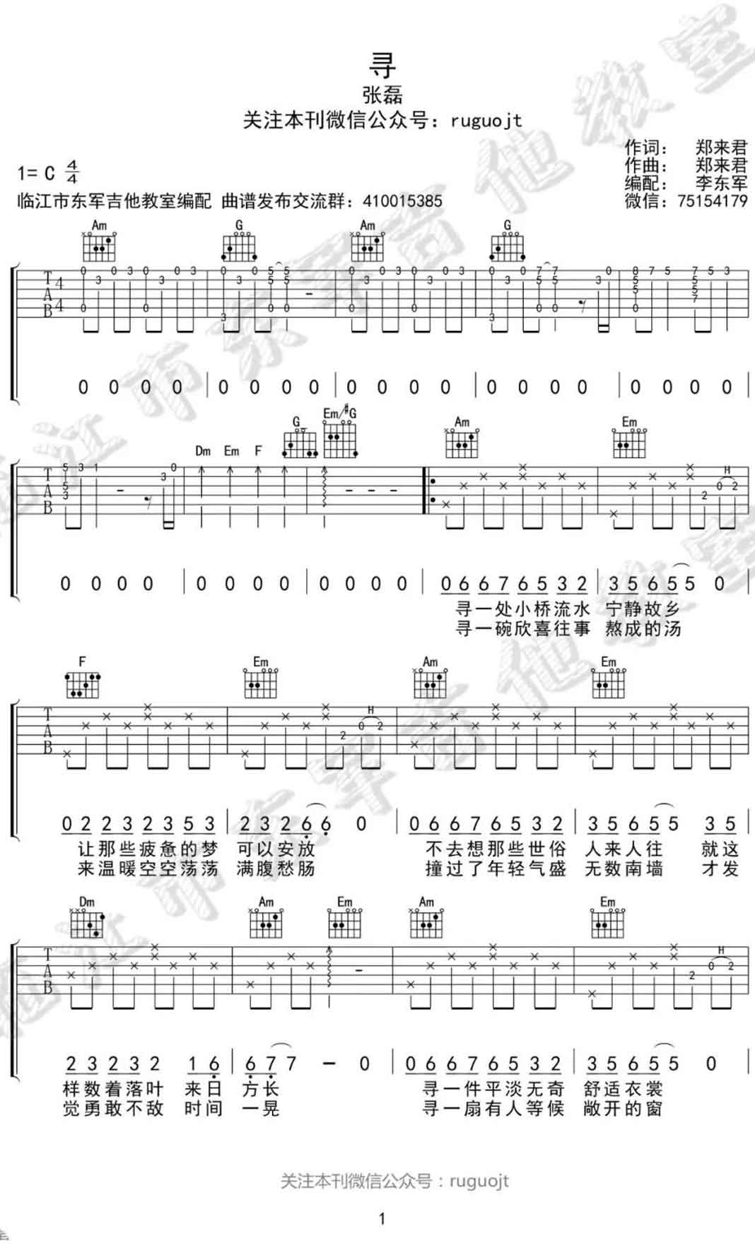 寻吉他谱-张磊...