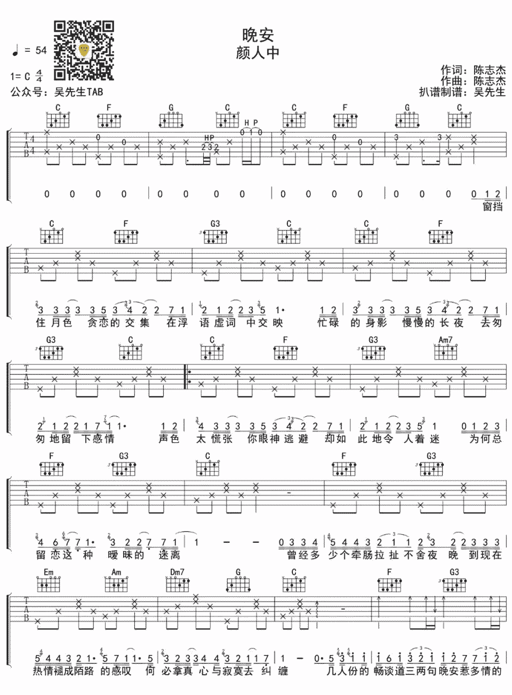 吉他晚安吉他谱-颜人中
