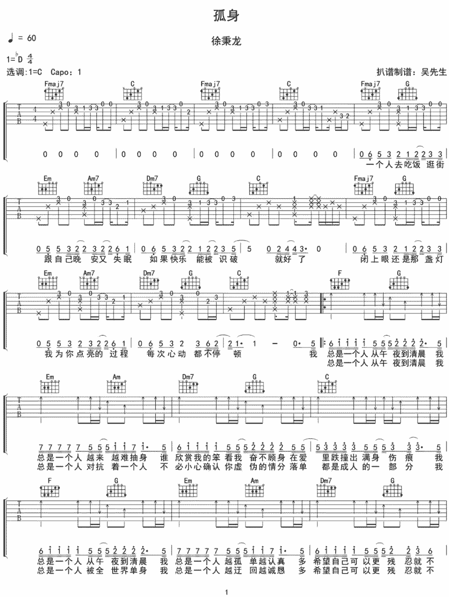 孤身吉他谱-徐秉龙...